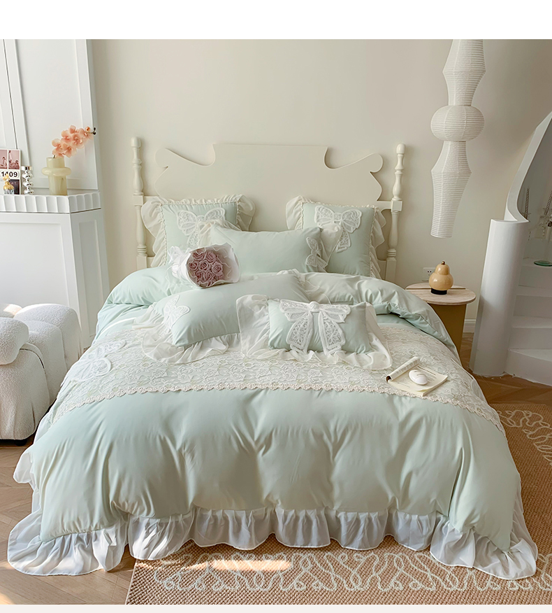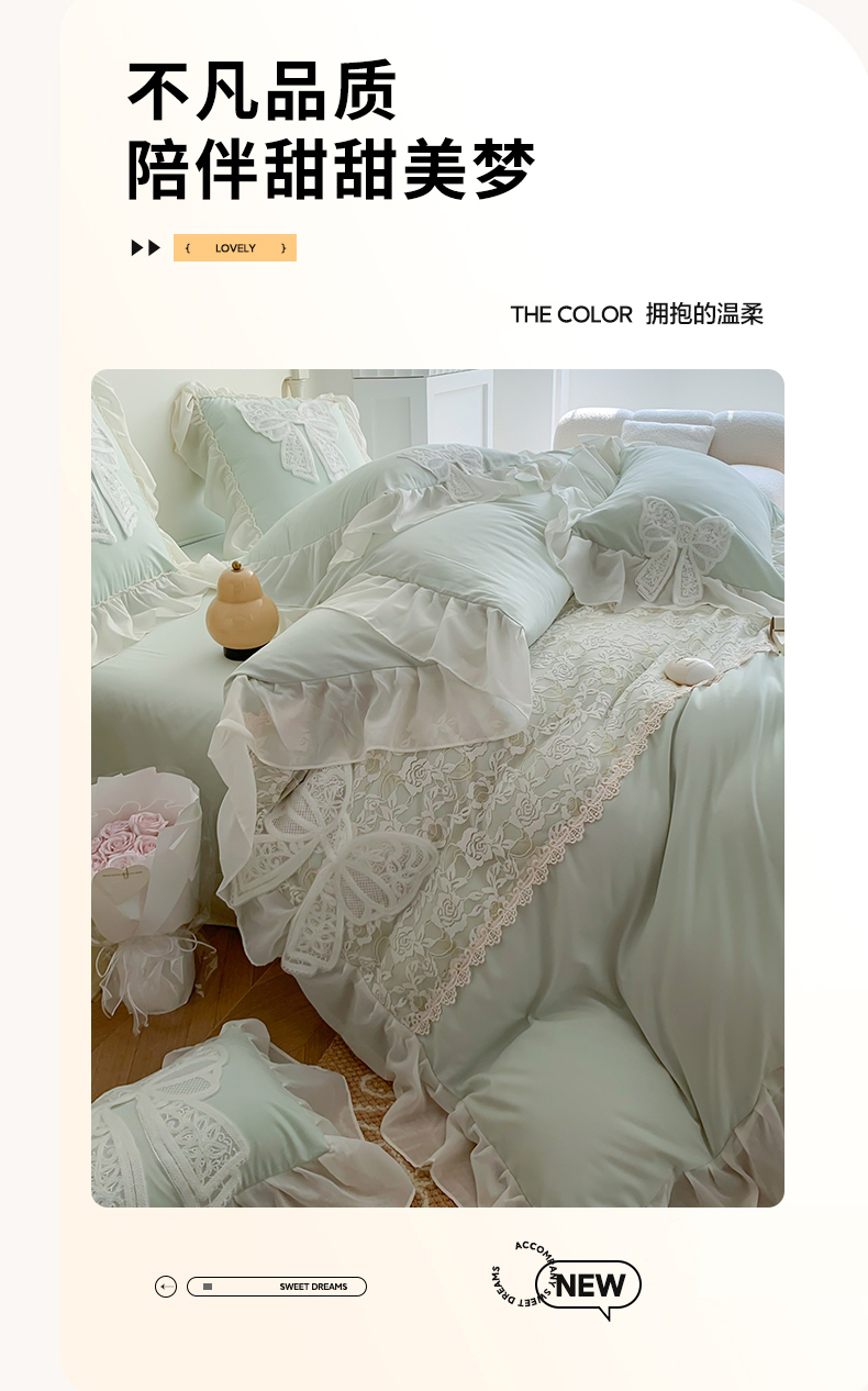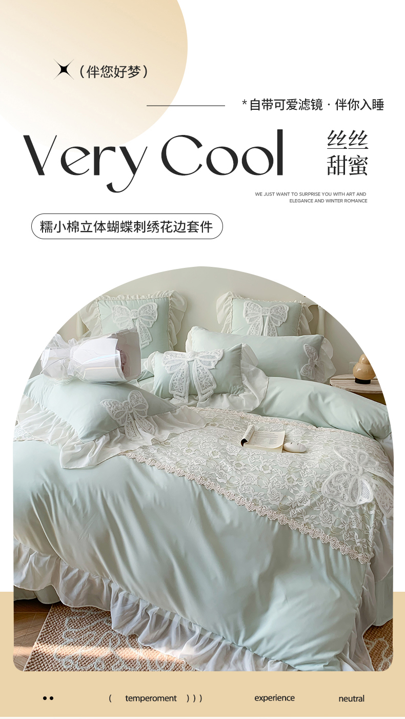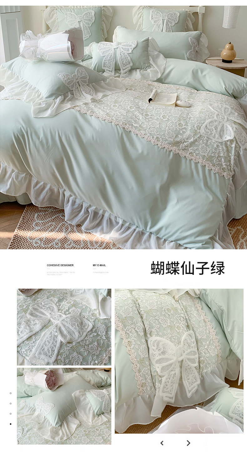 当前位置: 91家纺网 > 商品网购 > 床品套件 > 四件套 > 其它四件套 > 吾欢心2025新款糯小棉立体蝴蝶刺绣花边套件 蝴蝶仙子绿