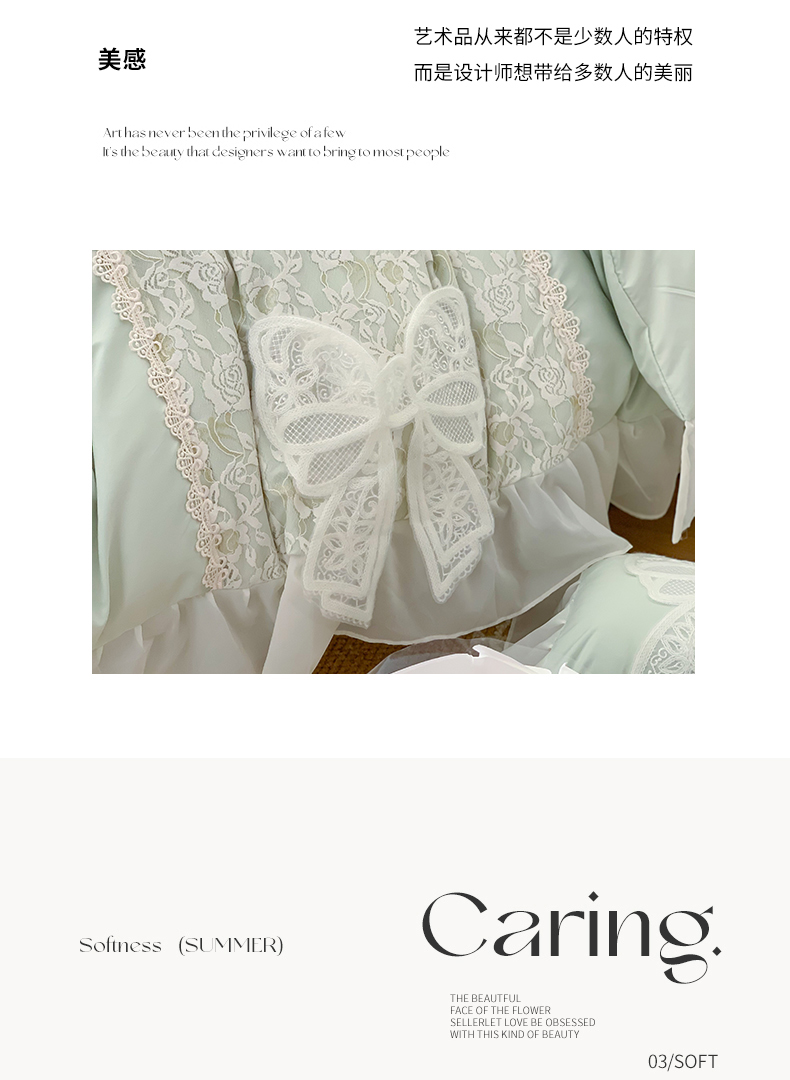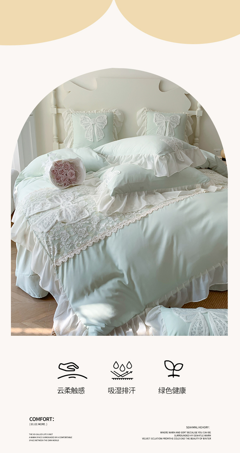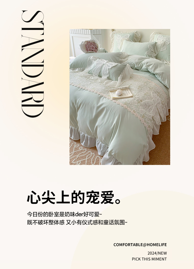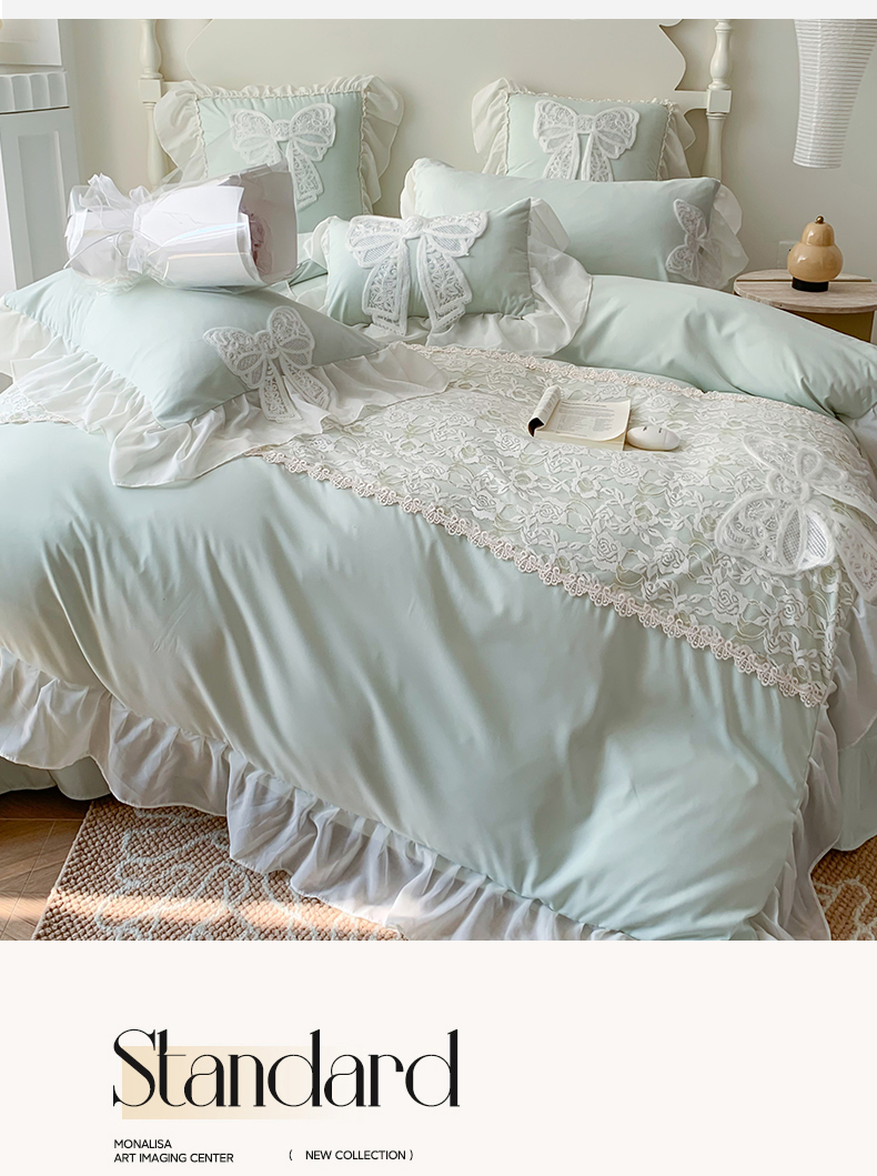 当前位置: 91家纺网 > 商品网购 > 床品套件 > 四件套 > 其它四件套 > 吾欢心2025新款糯小棉立体蝴蝶刺绣花边套件 蝴蝶仙子绿