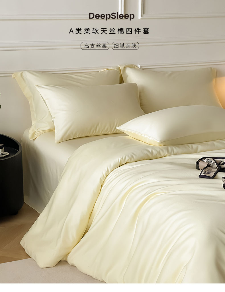 商品名称:Mr.pig猪先生水洗棉 2025新款A类柔软纯色天丝棉单被套 新月黄