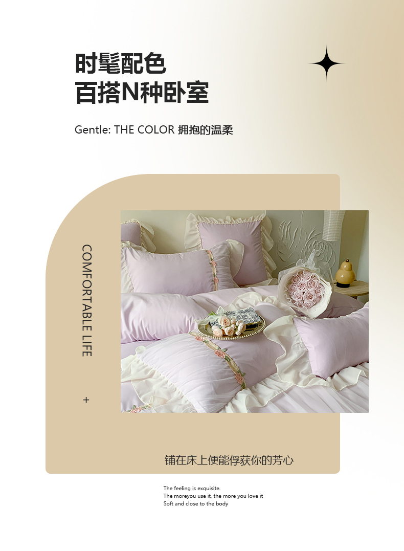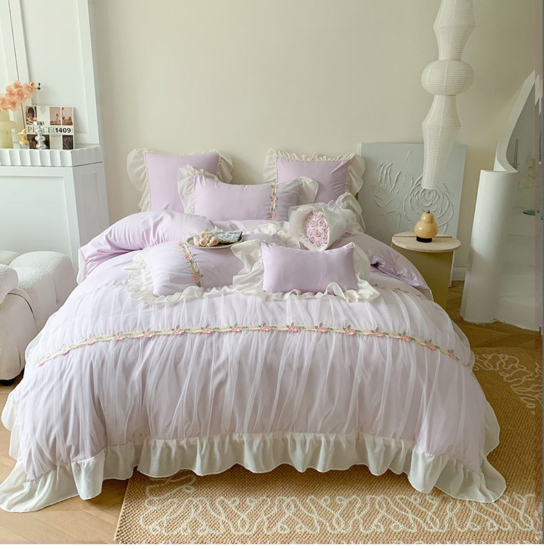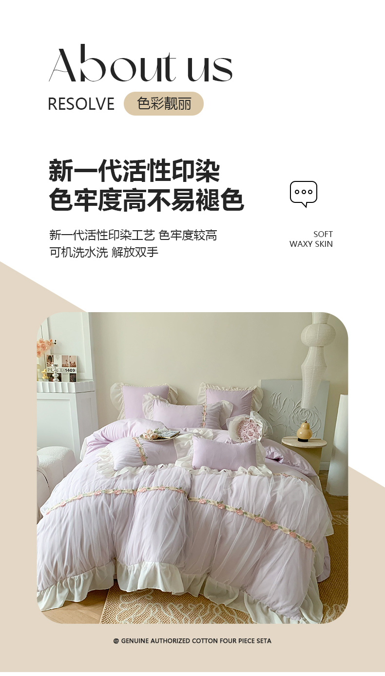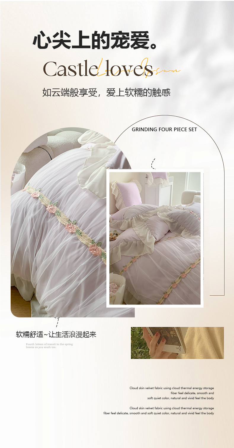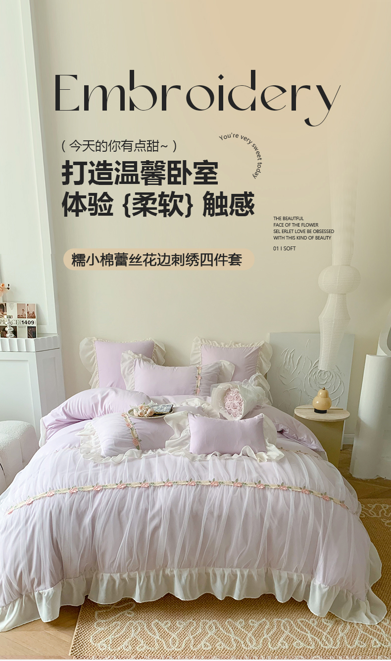 当前位置: 91家纺网 > 商品网购 > 床品套件 > 四件套 > 其它四件套 > 吾欢心2025新款糯小棉进口雪纺蕾丝花边加进口刺绣花边拼接四件套 维密天使紫