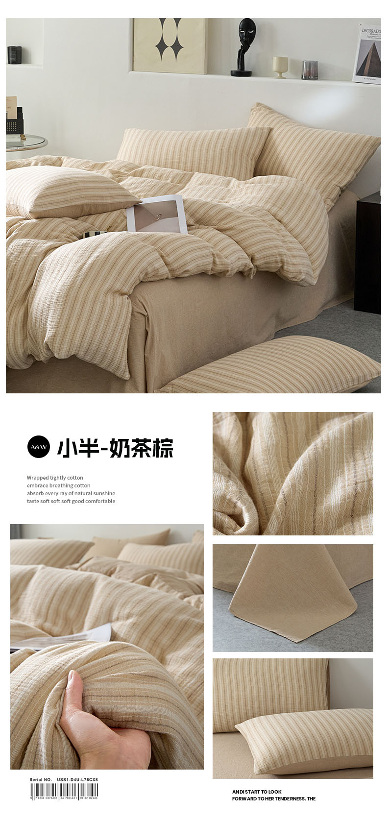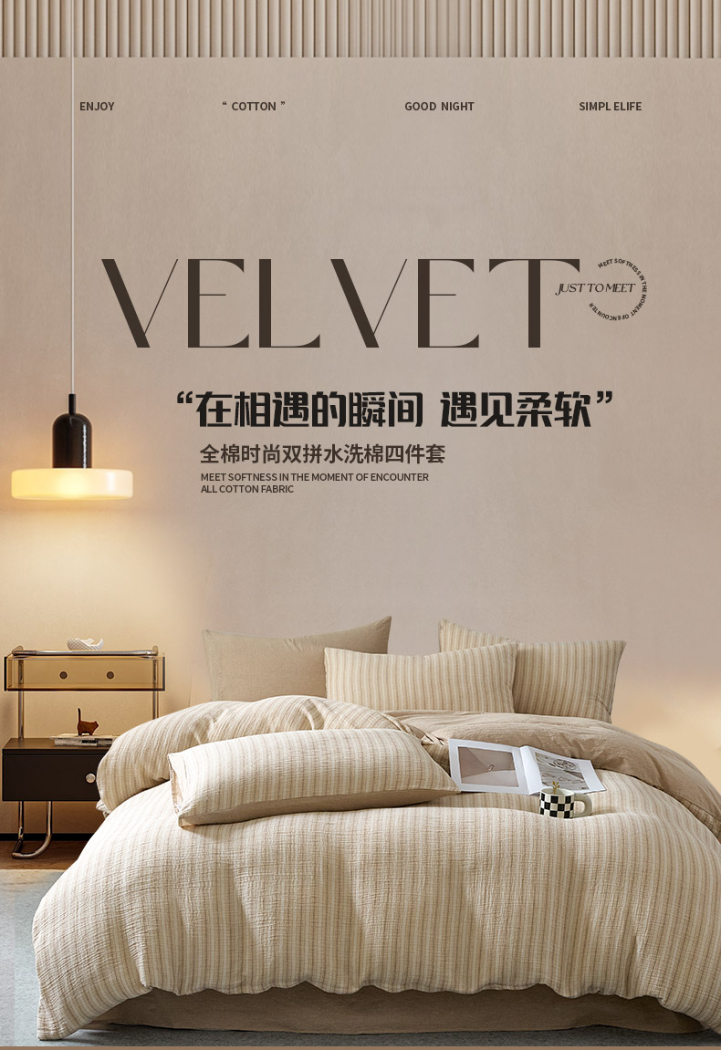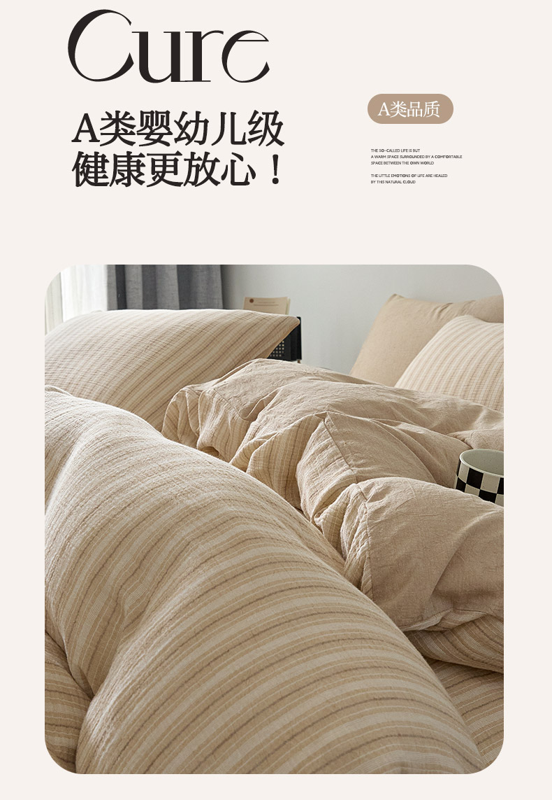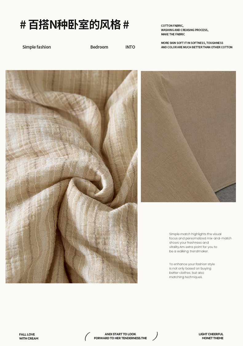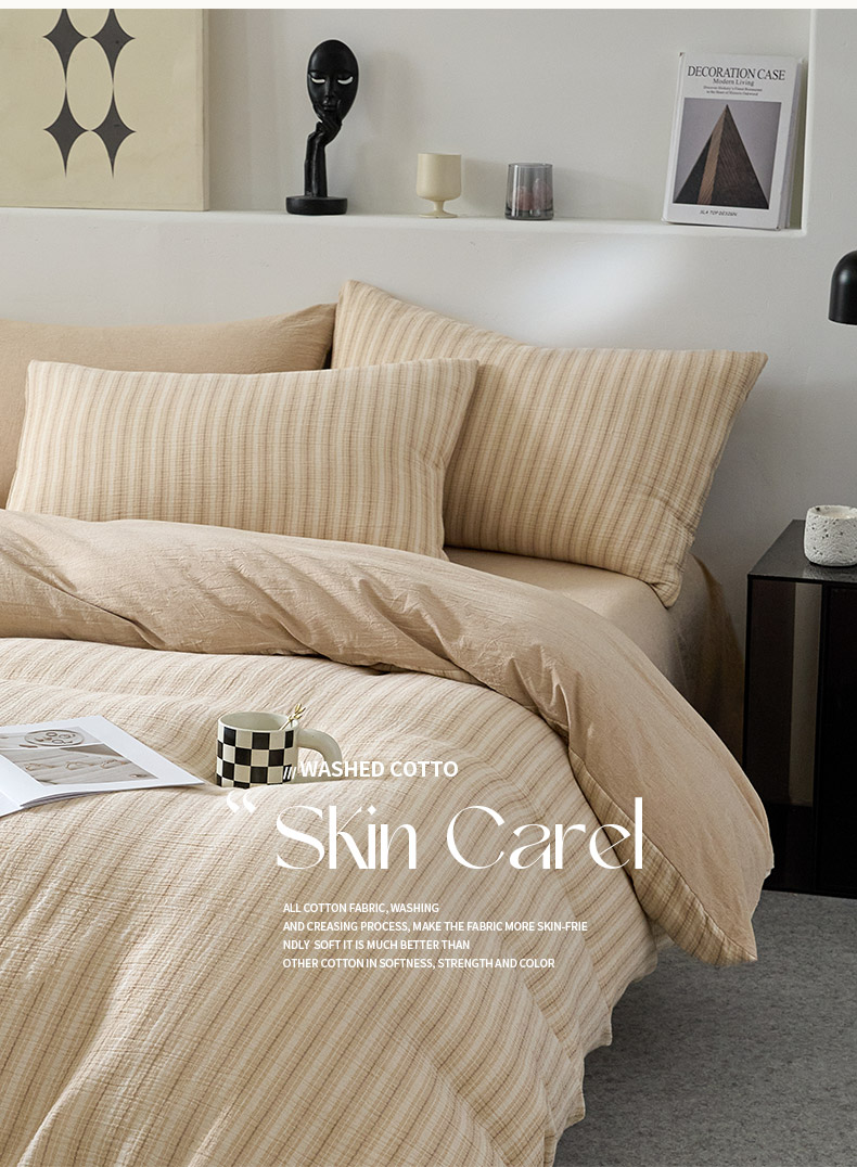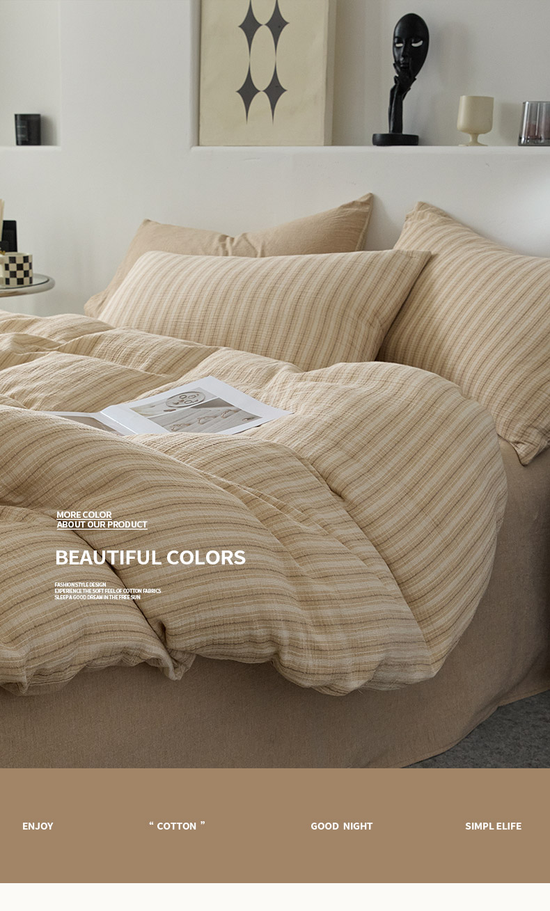 当前位置: 91家纺网 > 商品网购 > 床品套件 > 四件套 > 全棉普通四件套 > AB家纺 2025新款三层款皱皱纱条纹四件套 小半-奶茶棕