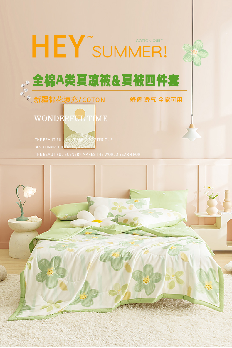 商品名称:(总)暖阳 【同款地板价】2026年新款全棉印花棉花夏被四件套被子被芯