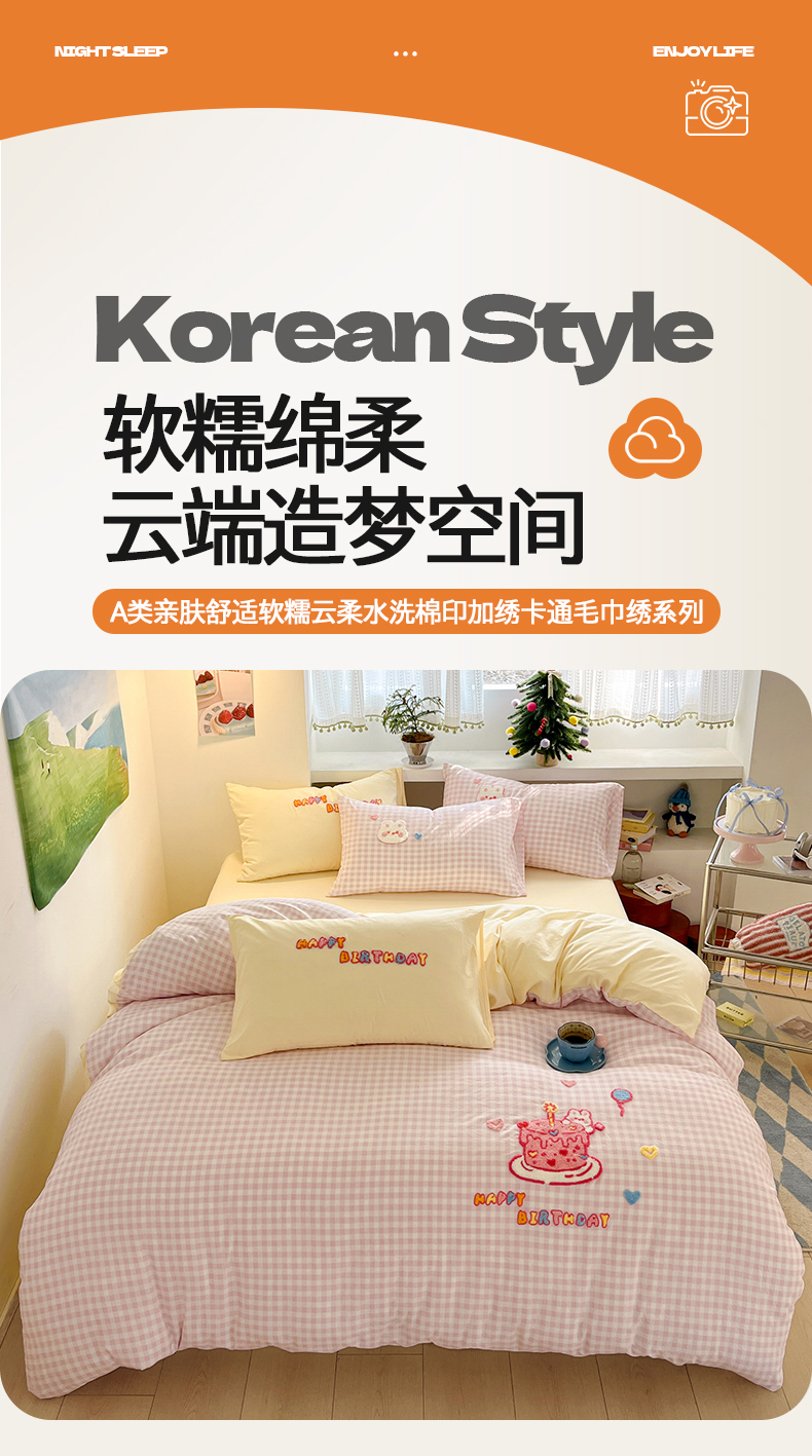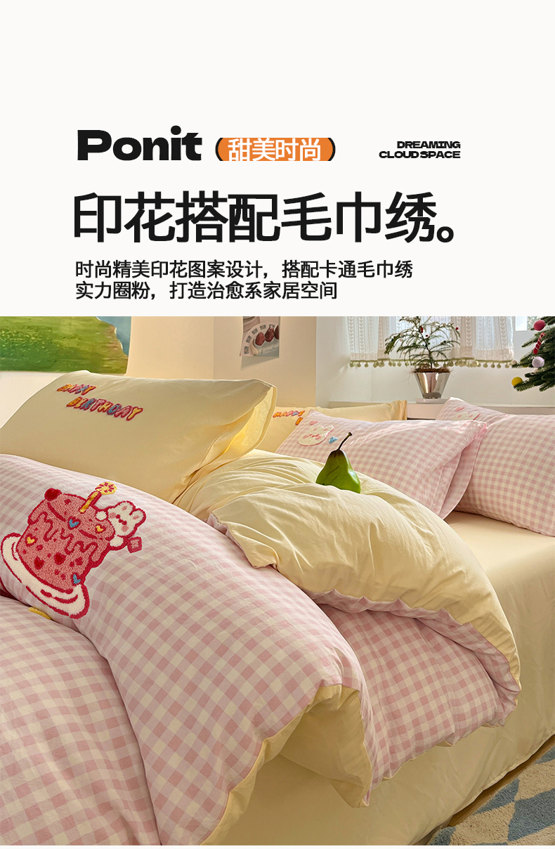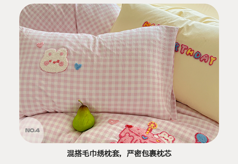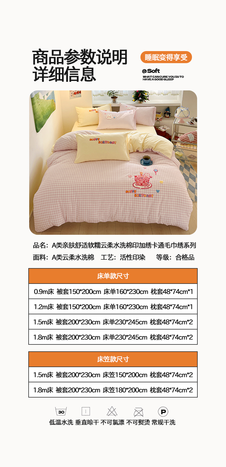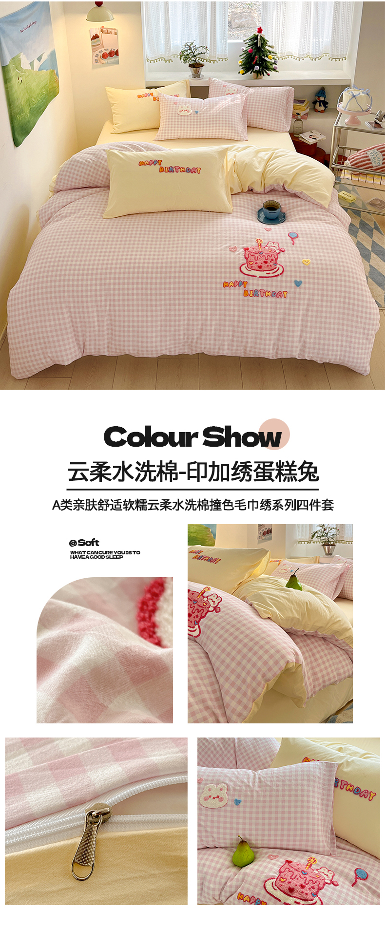 当前位置: 91家纺网 > 商品网购 > 床品套件 > 四件套 > 水洗棉四件套 > 桃心家居 2025新款A类亲肤舒适软糯云柔水洗棉印加绣卡通毛巾绣水洗棉系列 云柔水洗棉-印加绣蛋糕兔
