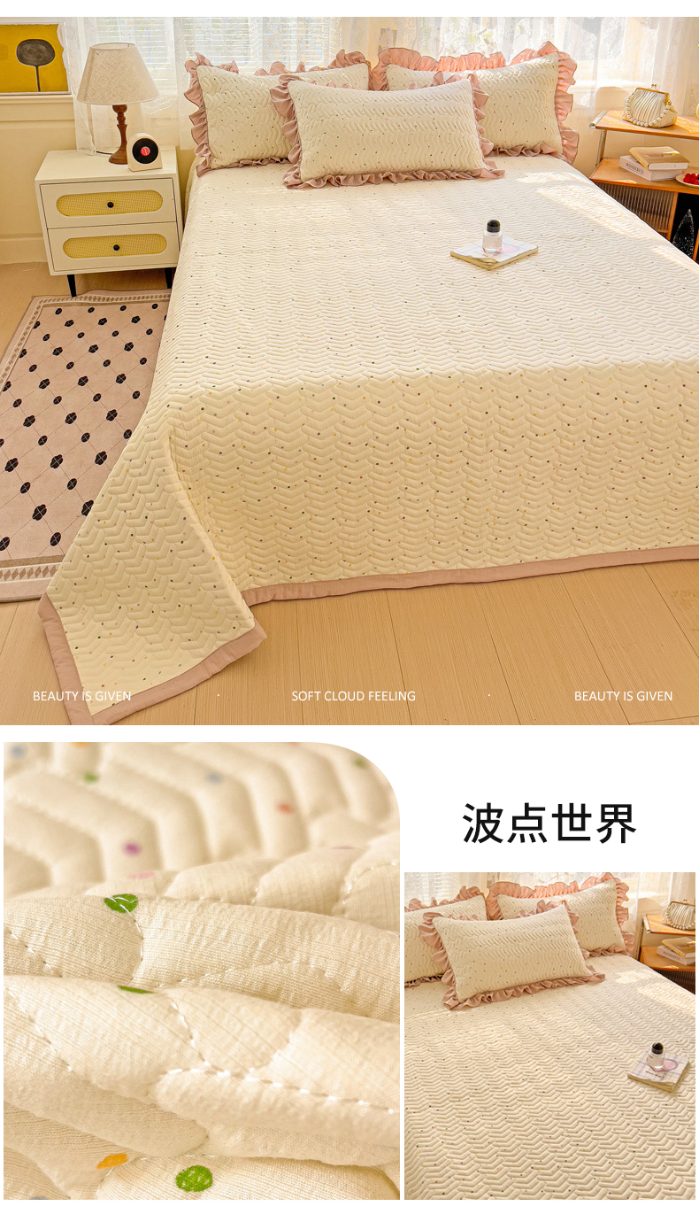 商品名称:纽缦家纺 2025云感提花双层纱加厚夹棉绗缝床盖 波点世界