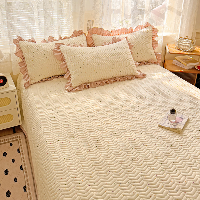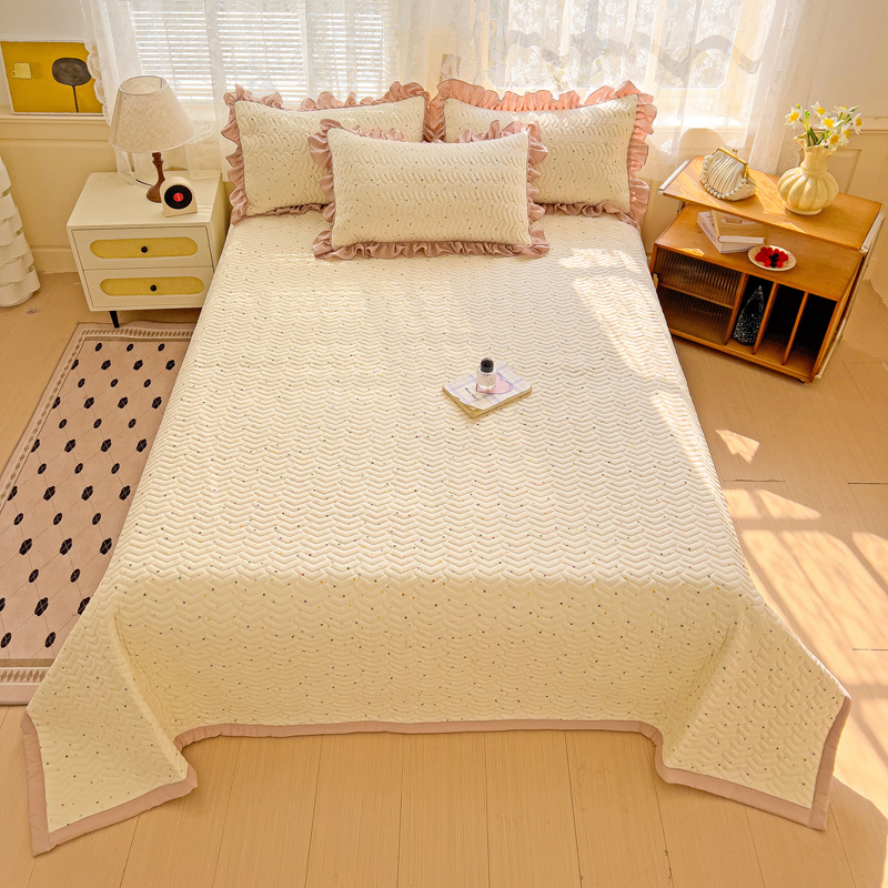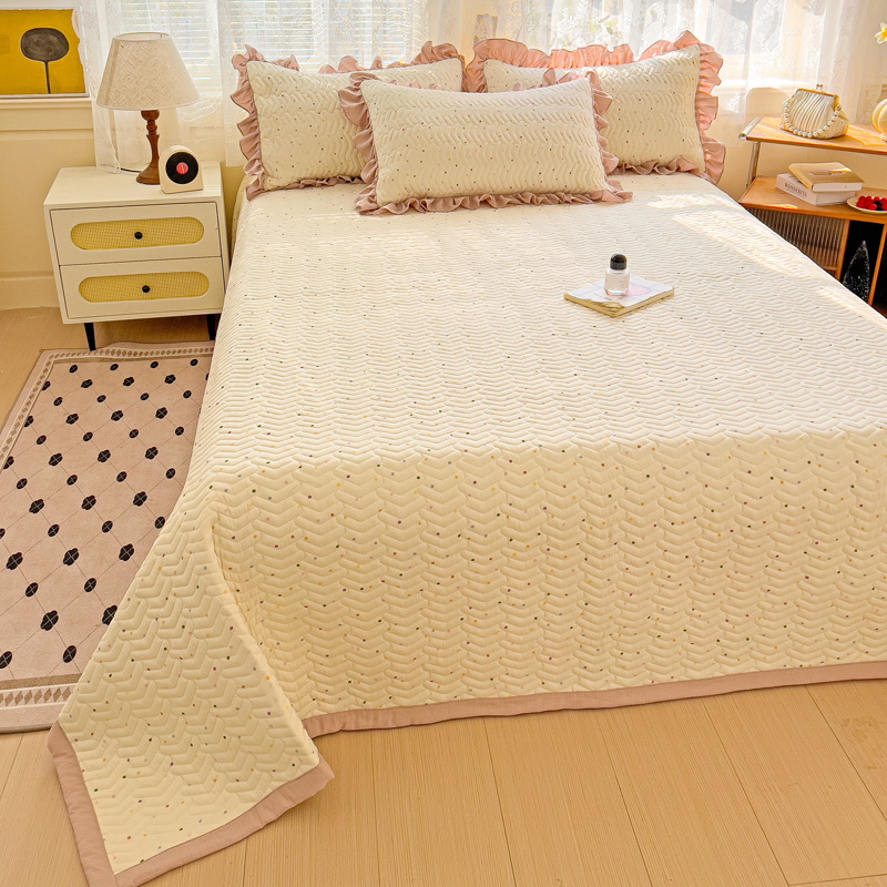纽缦家纺 2025云感提花双层纱加厚夹棉绗缝床盖 波点世界