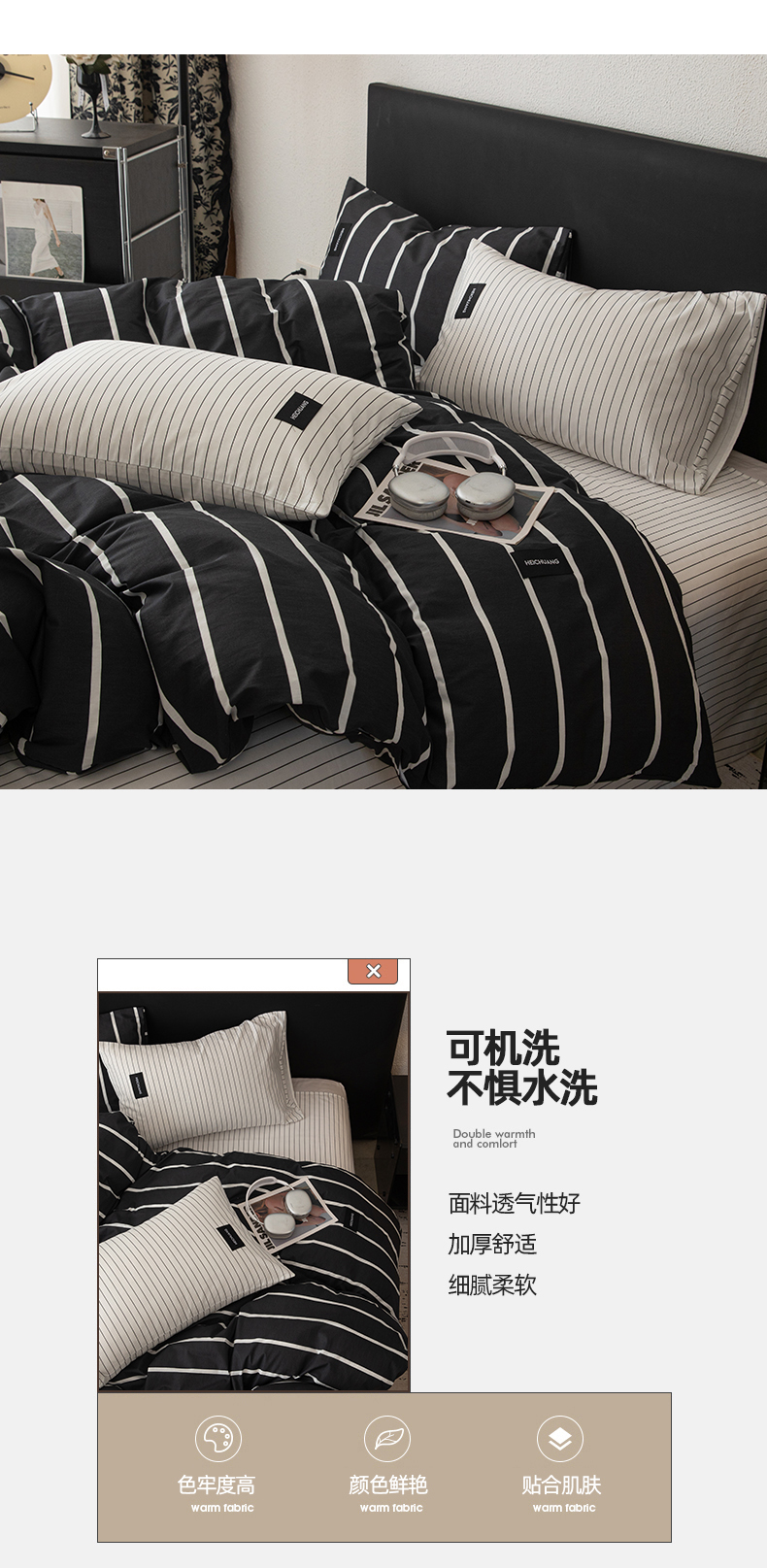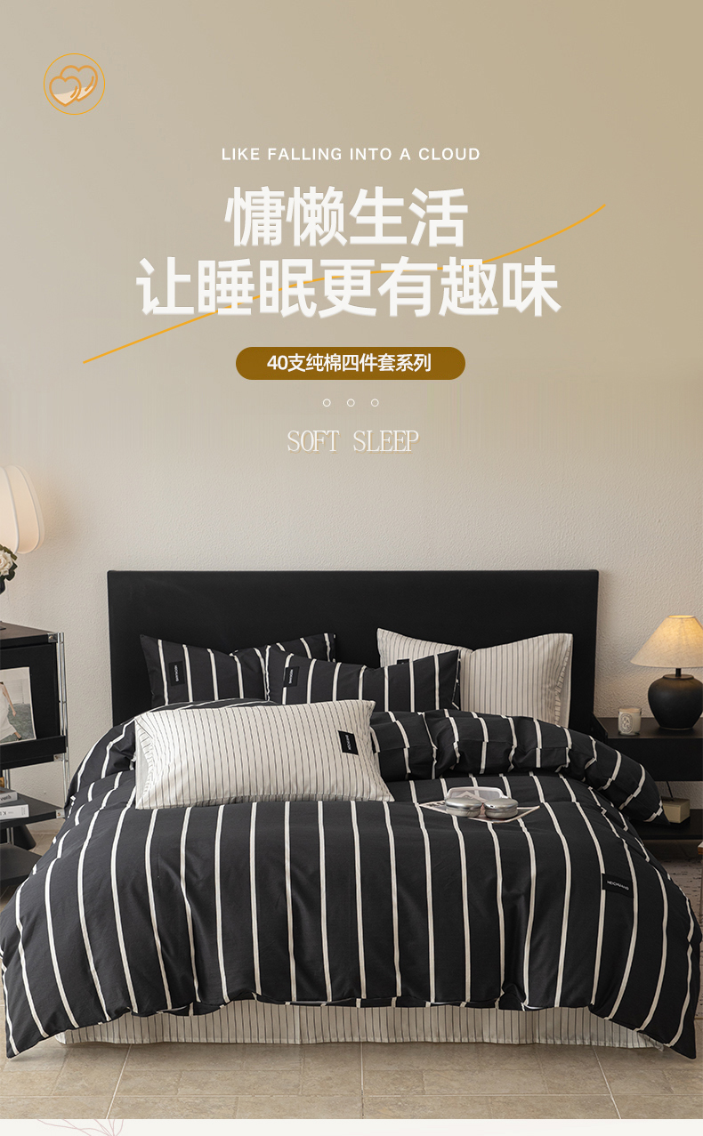 商品名称:2025新款简约纯棉四件套 暗影黑