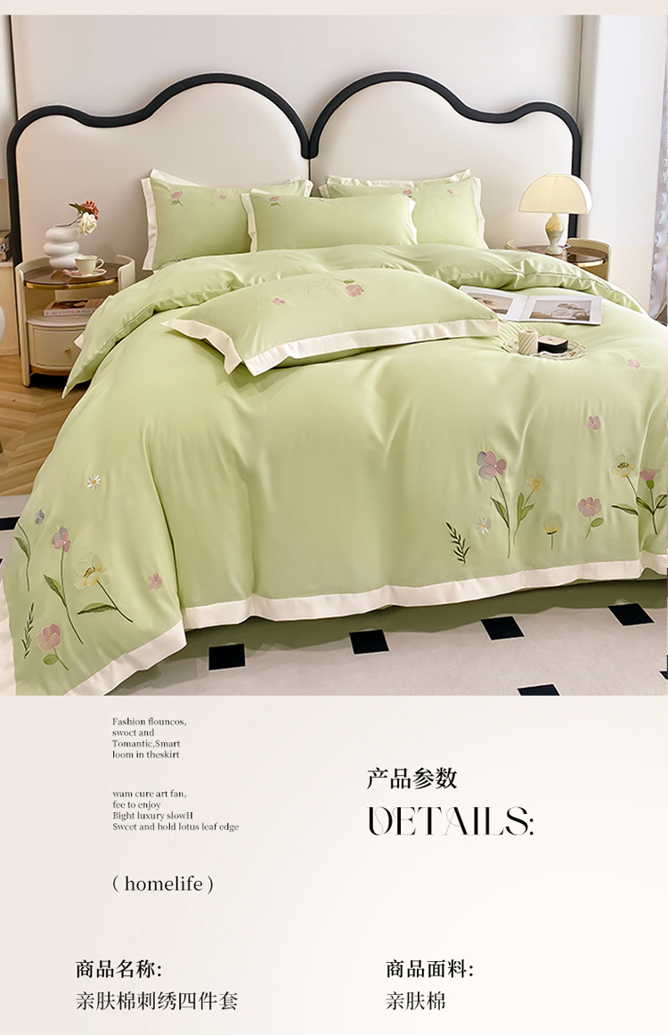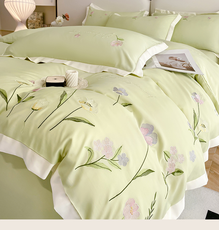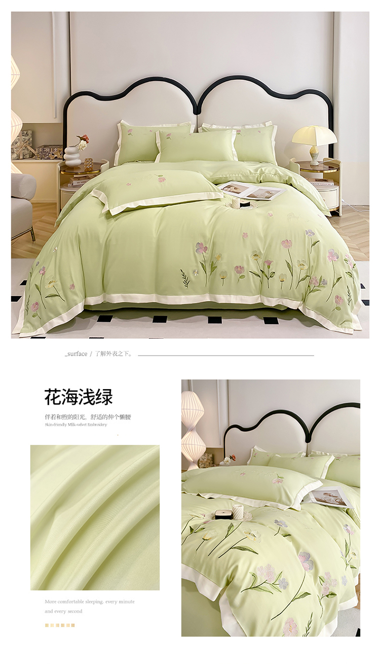 (总)狂想家 2025亲肤棉重工刺绣系列四件套-花海,花海欢乐粉,花海苹果绿,花海浅绿,花海浅杏粉,花海天蓝