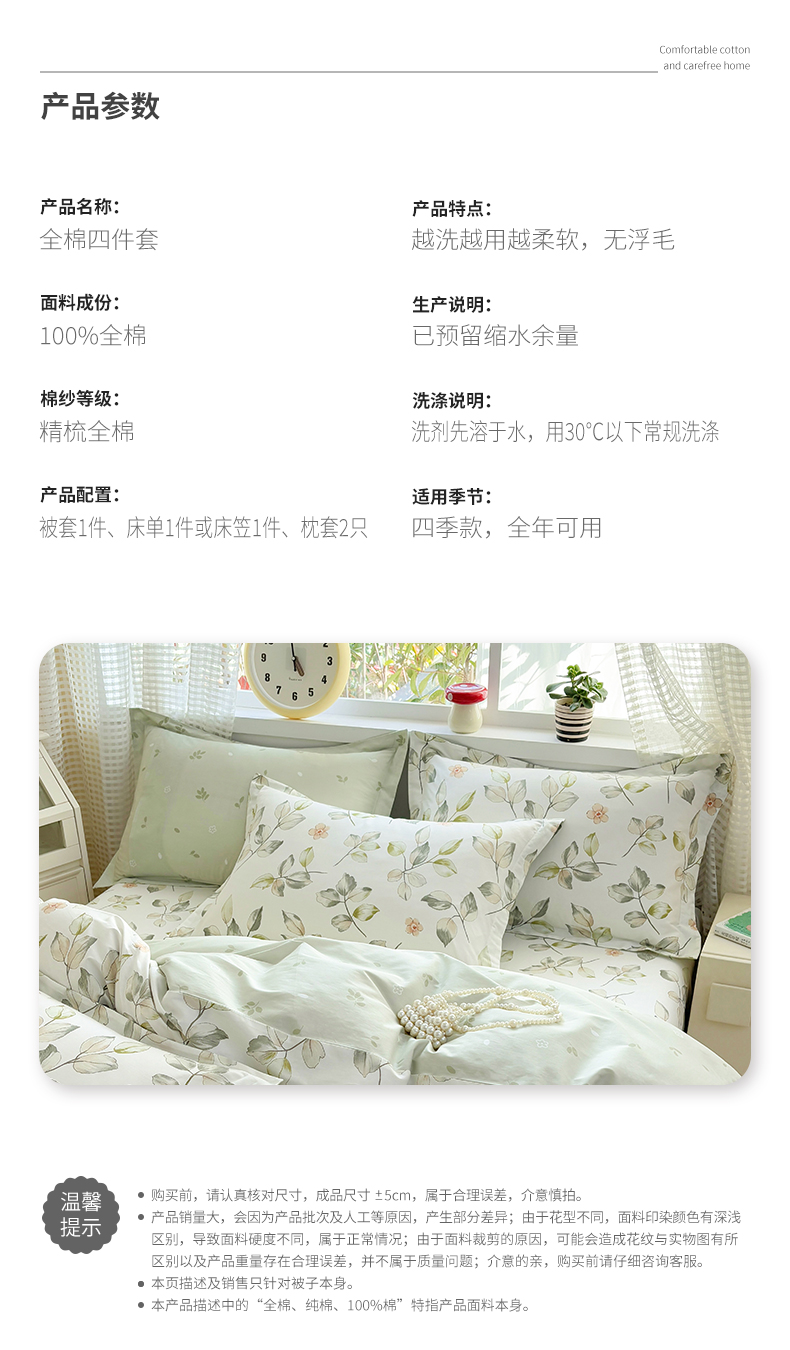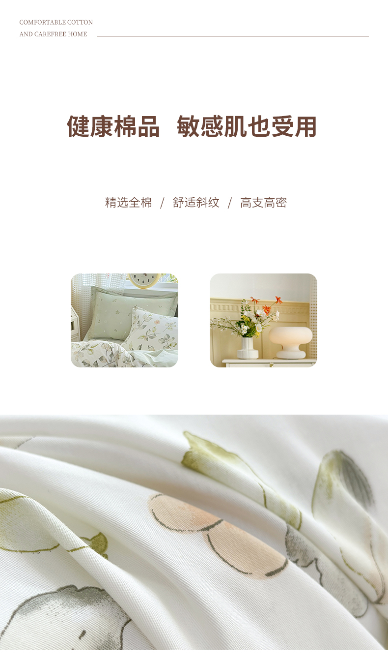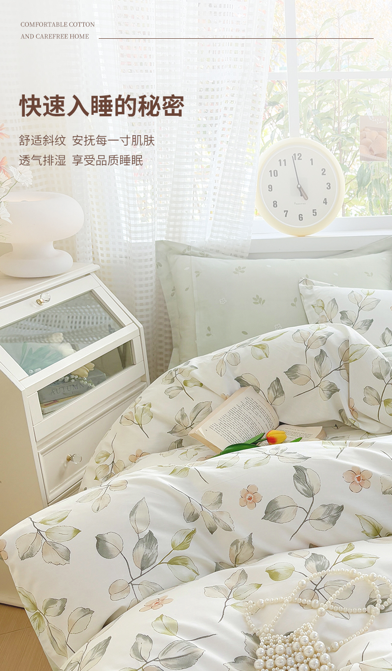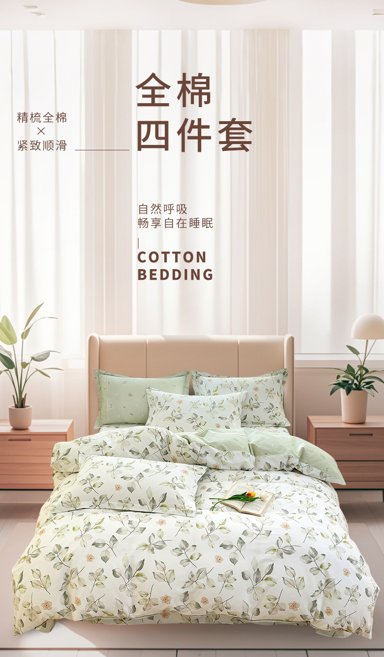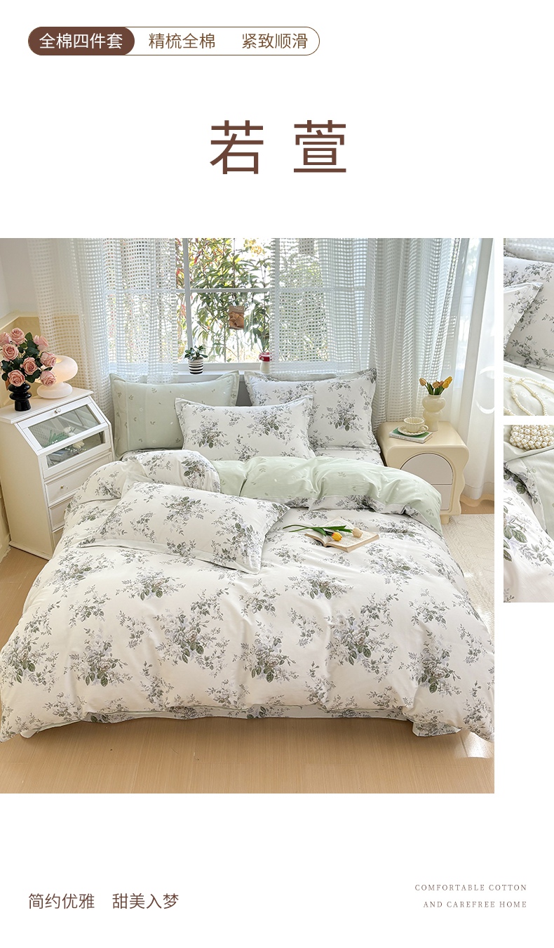 当前位置: 91家纺网 > 商品网购 > 床品套件 > 四件套 > 全棉普通四件套 > 元元被芯 2025新款40支13372全棉印花全棉四件套 春溪