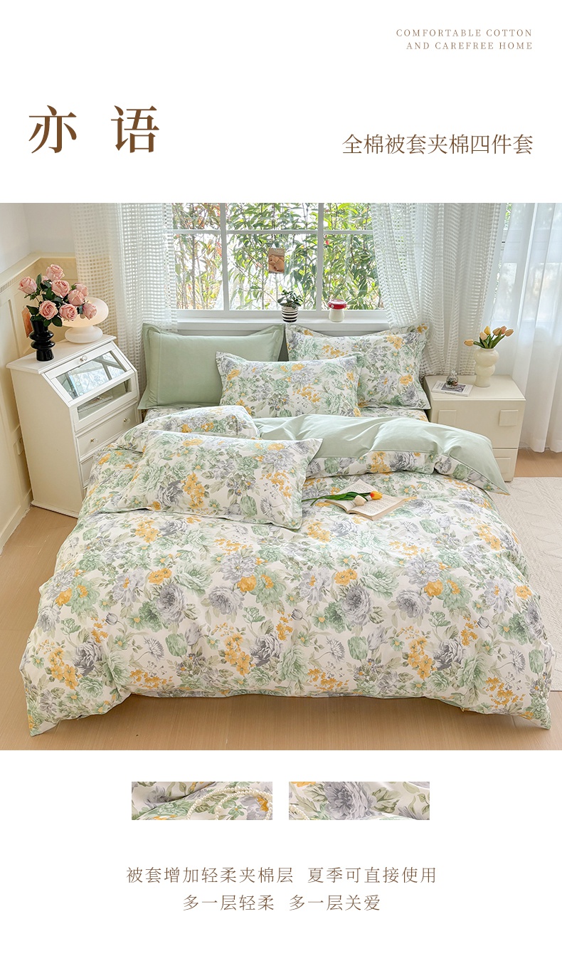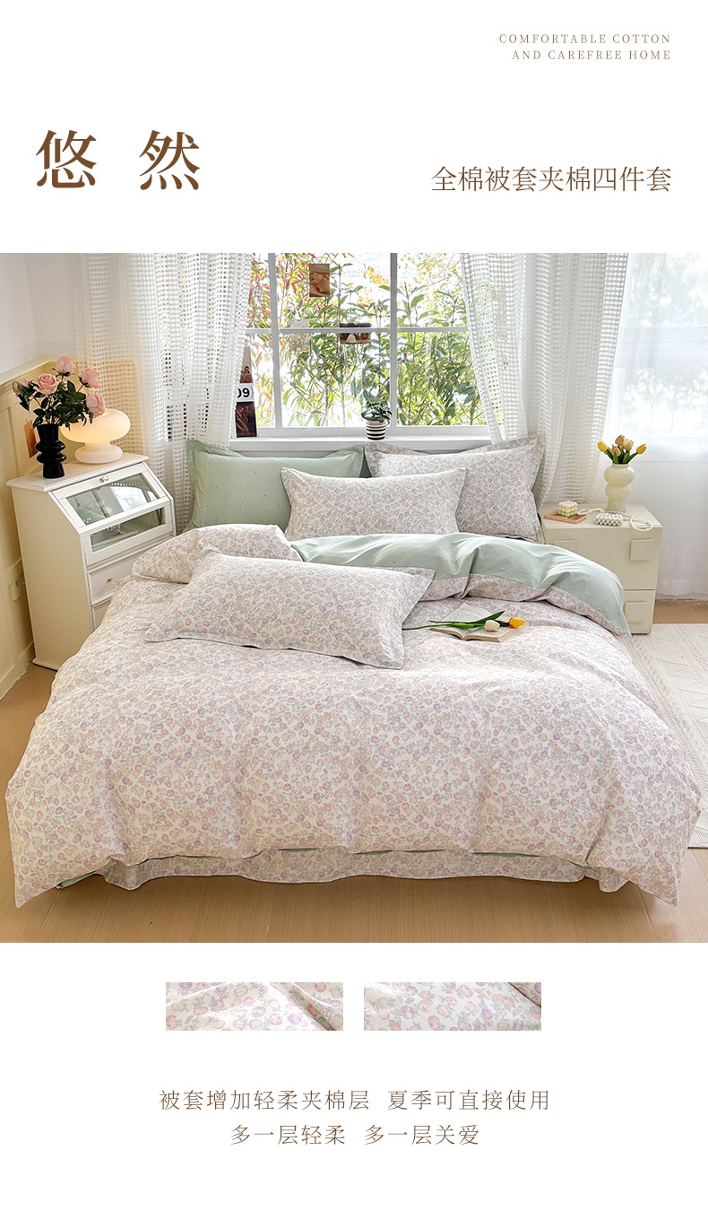 当前位置: 91家纺网 > 商品网购 > 床品套件 > 四件套 > 全棉普通四件套 > 元元被芯 2025新款40支13372全棉印花全棉被套夹棉四件套 半夏
