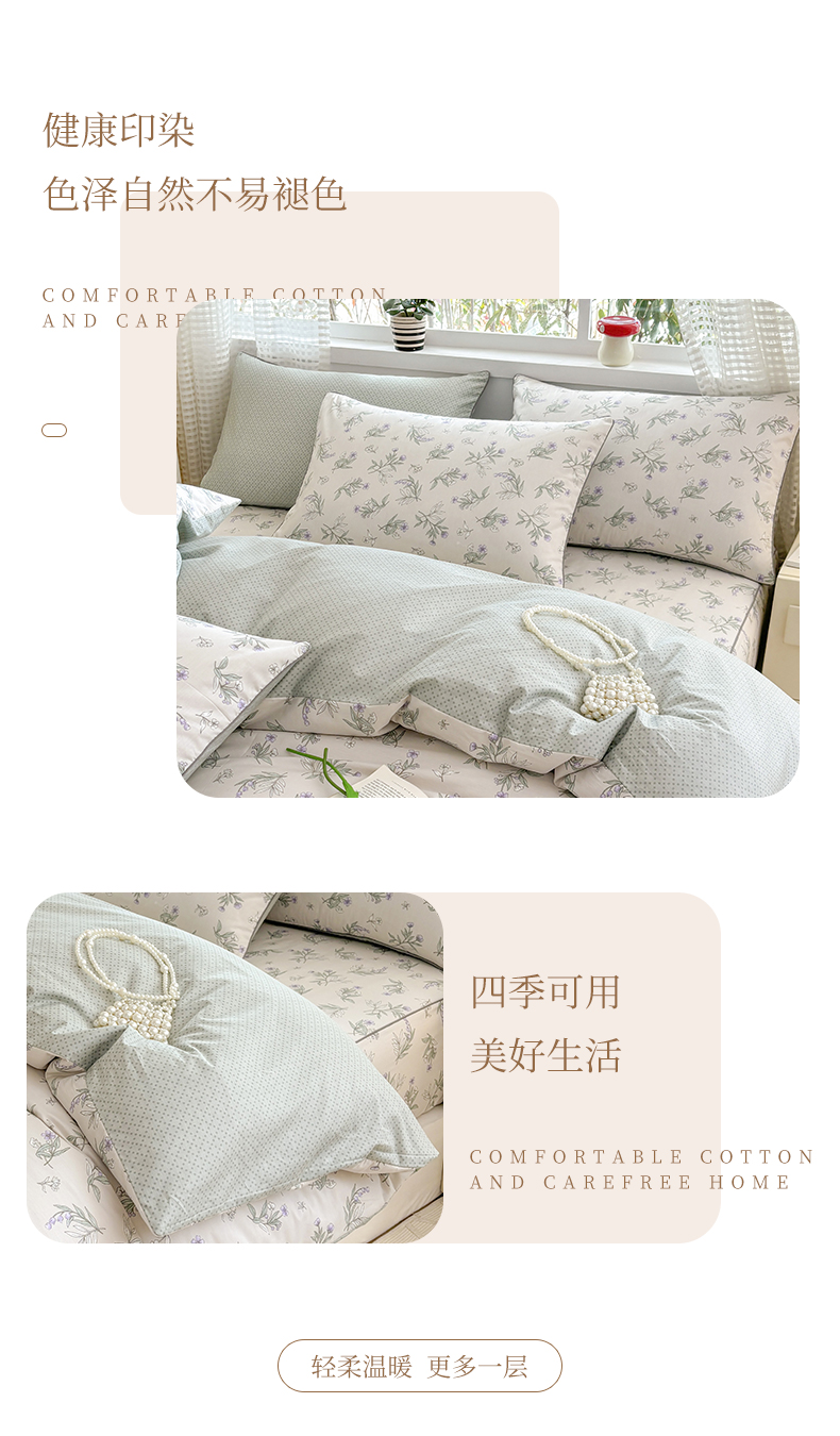 当前位置: 91家纺网 > 商品网购 > 床品套件 > 四件套 > 全棉普通四件套 > 元元被芯 2025新款40支13372全棉印花全棉夹棉床笠四件套 春溪