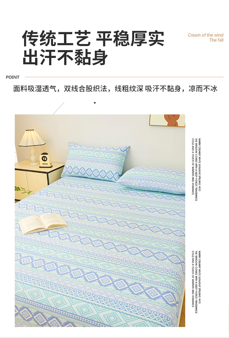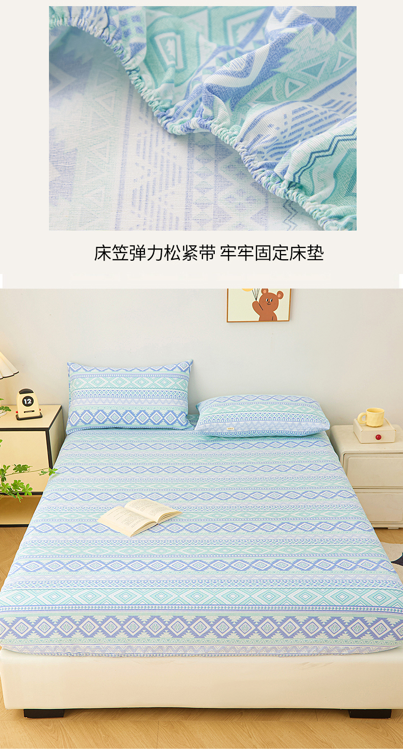 • 91家纺网 家纺一手货源 找家纺 首爱家纺 2025新款锦柔老粗布印花床笠 蓝色恋格