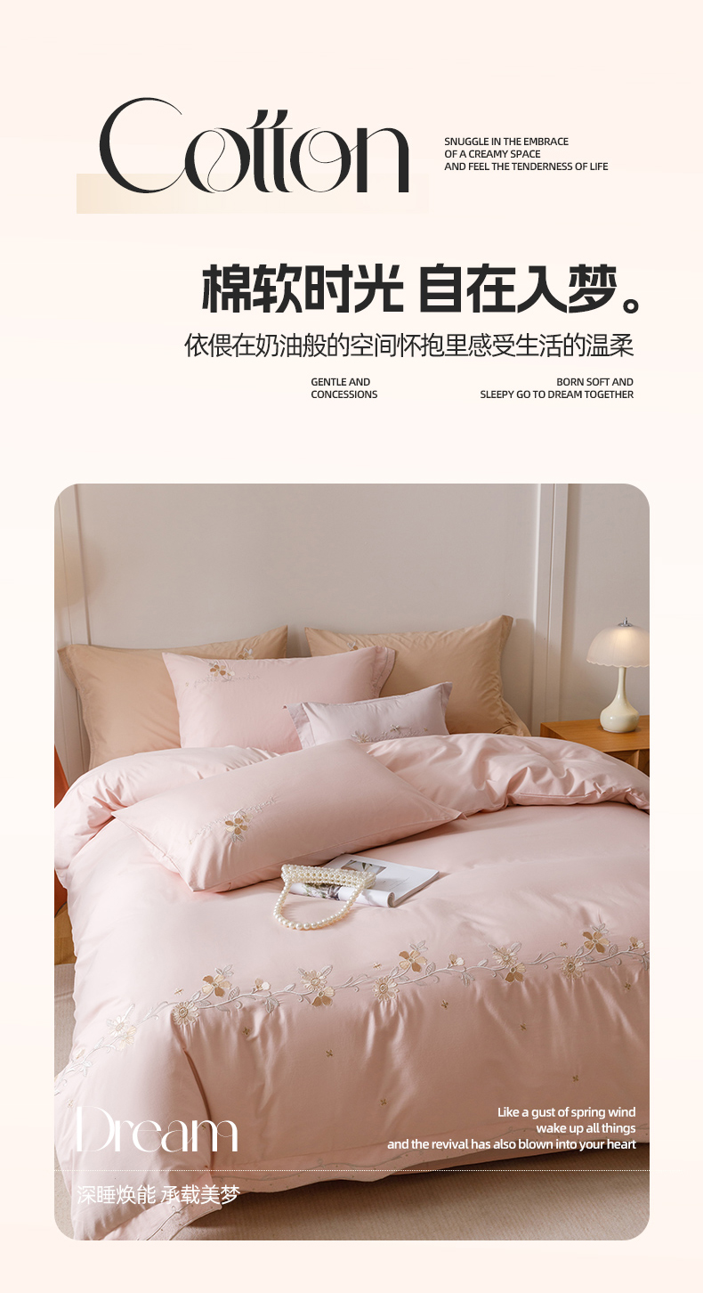 (总)艾莱家纺 2025新款A类100支长绒棉纯棉四件套-郁金香,郁金香-薄荷绿,郁金香-浅米驼,郁金香-珍珠粉
