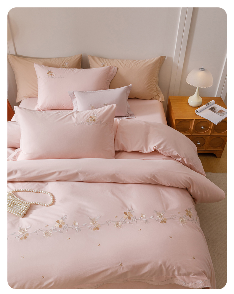 艾莱家纺 2025新款A类水洗棉加厚绣花四件套-栀夏 栀夏-草莓奶粉