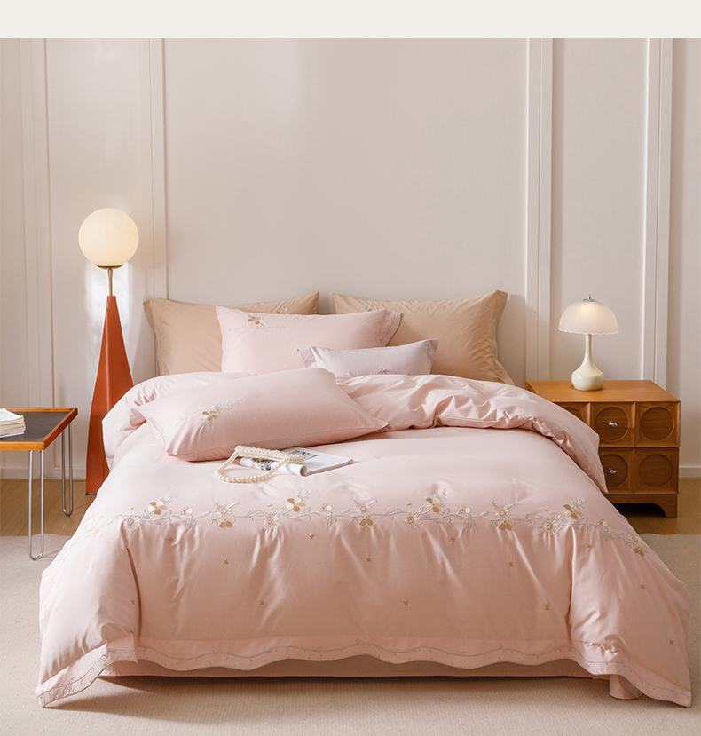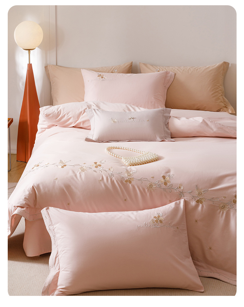 (总)艾莱家纺 2025新款A类精梳纯棉刺绣花四件套-赫柏,赫柏-橙夕,赫柏-花田米,赫柏-浅粉,赫柏-夜绿