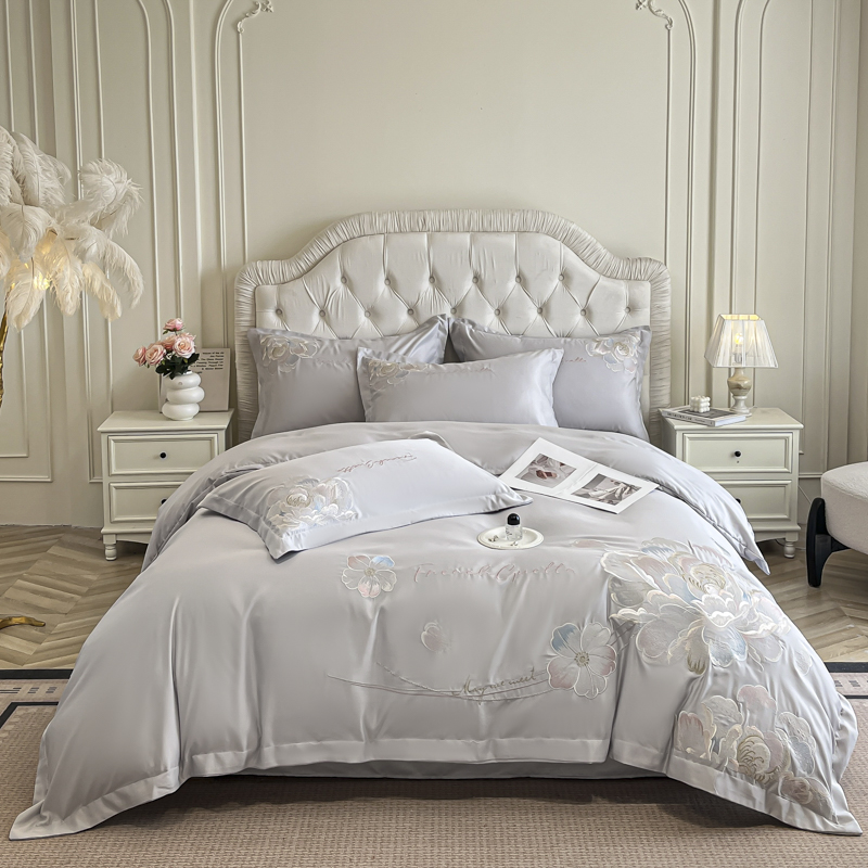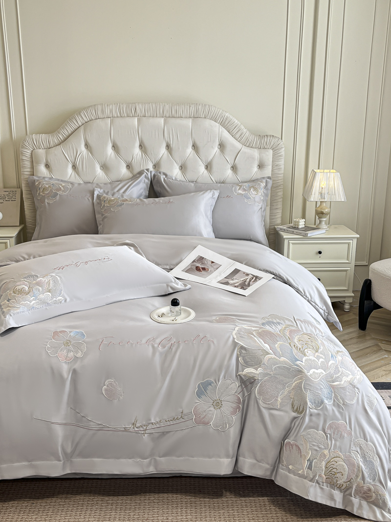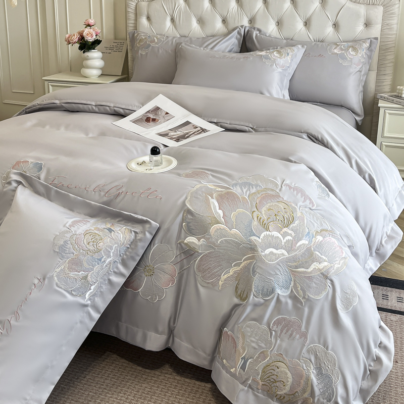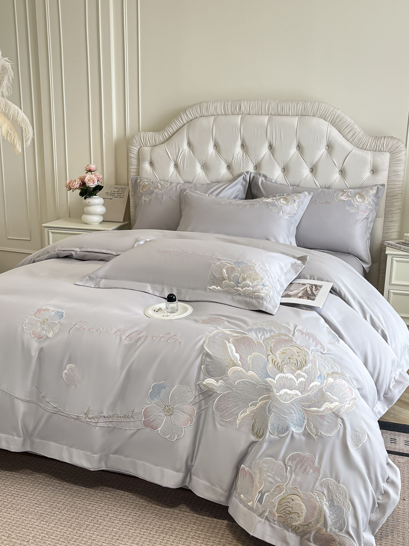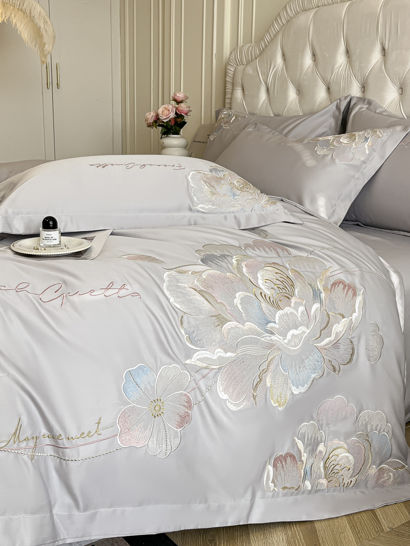(总)菲儿家纺 2025新款轻奢简约冰丝刺绣四件套-铃兰,铃兰-灰,铃兰-兰,铃兰-粉,铃兰-米白,铃兰-紫