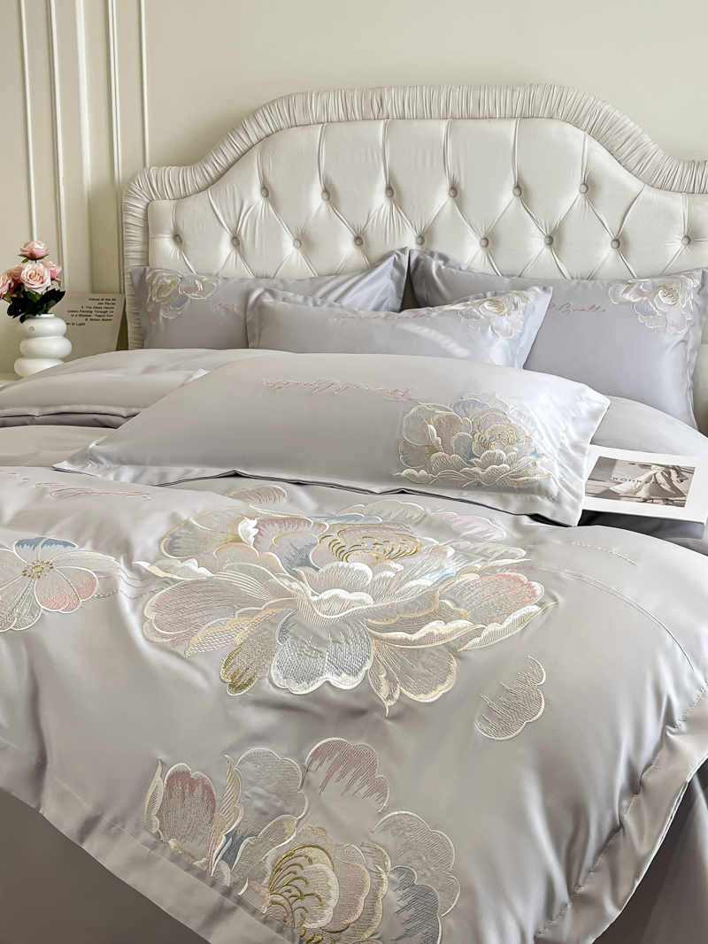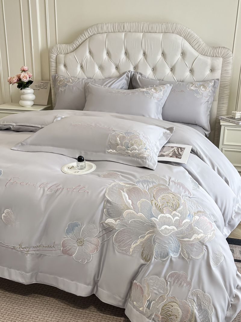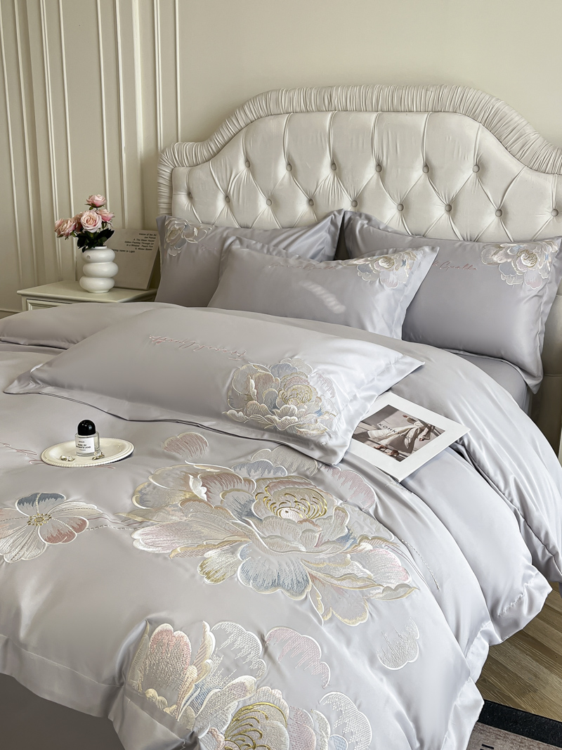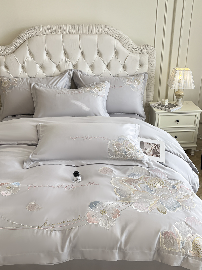 (总)菲儿家纺 2025新款轻奢简约冰丝刺绣四件套-铃兰,铃兰-灰,铃兰-兰,铃兰-粉,铃兰-米白,铃兰-紫