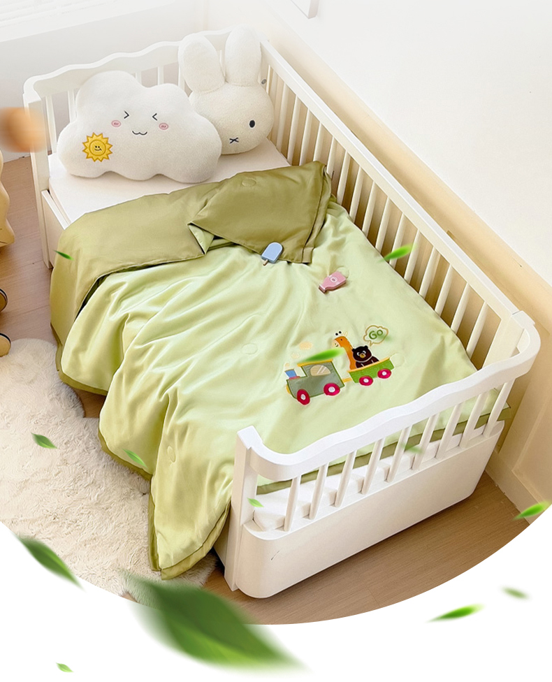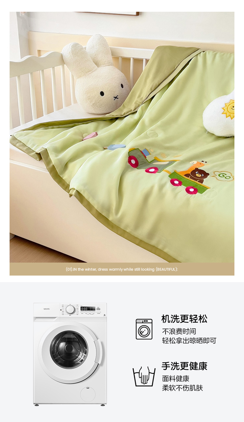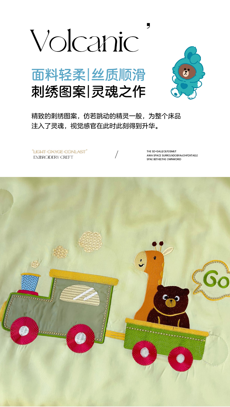 商品名称:御棉坊 2025新款60S莱赛尔兰精天丝大豆刺绣儿童夏被子被芯 火车小鹿