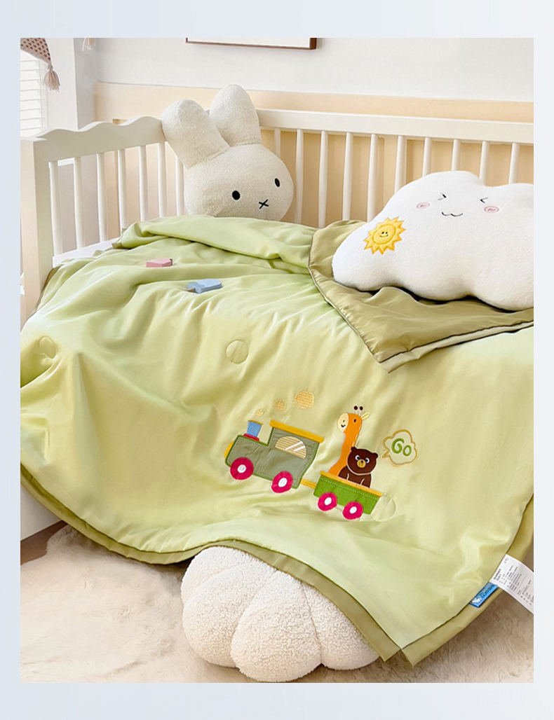 御棉坊 2025新款60S莱赛尔兰精天丝大豆刺绣儿童夏被子被芯 火车小鹿