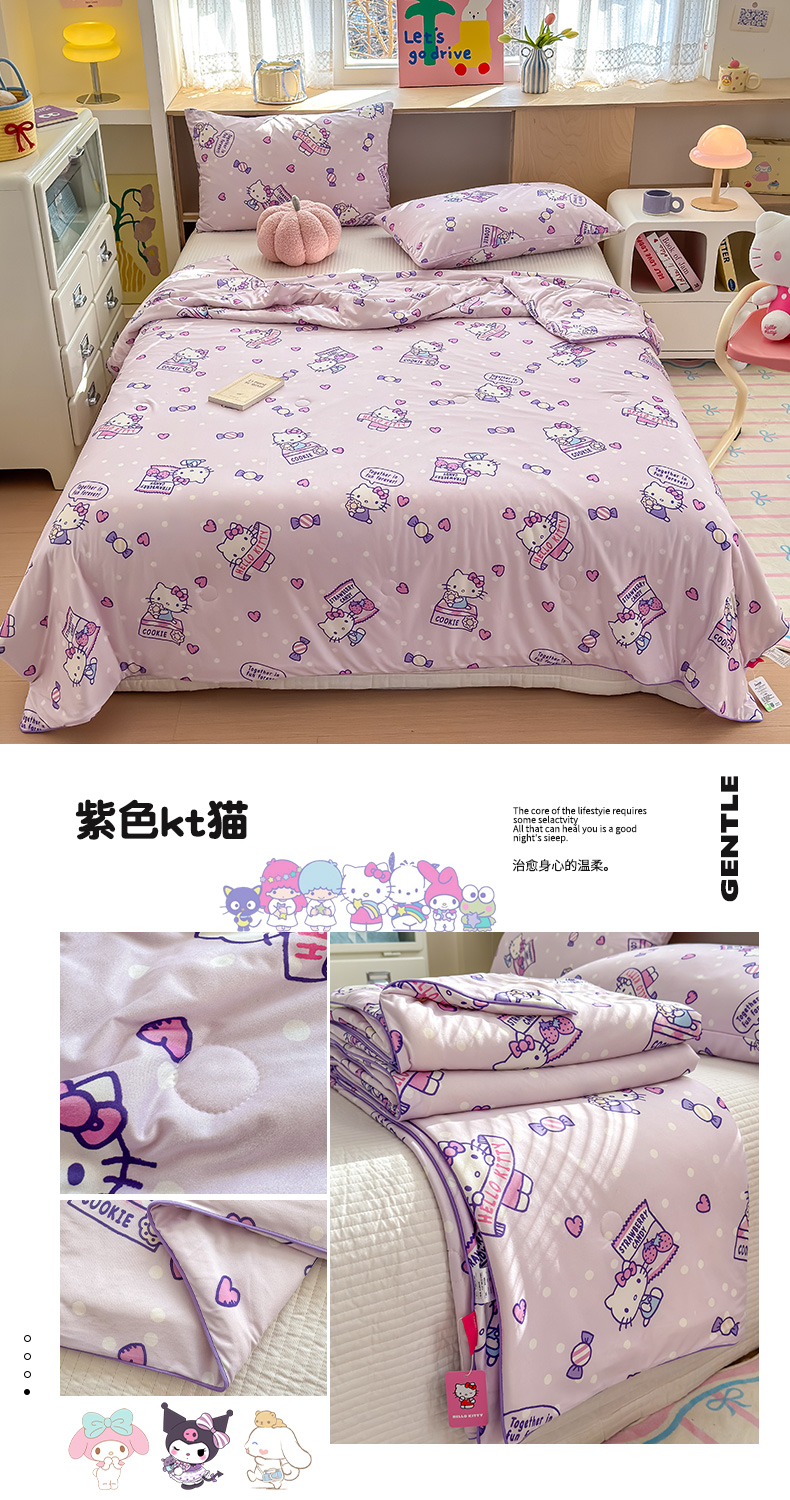 (总)木堇家居 2025春夏三丽鸥云柔棉毛巾绣夏被四件套,毛巾绣-粉色美乐蒂,毛巾绣-粉色kt猫,毛巾绣-蓝色帕恰狗,毛巾绣-小马大耳狗,毛巾绣-紫色库洛米