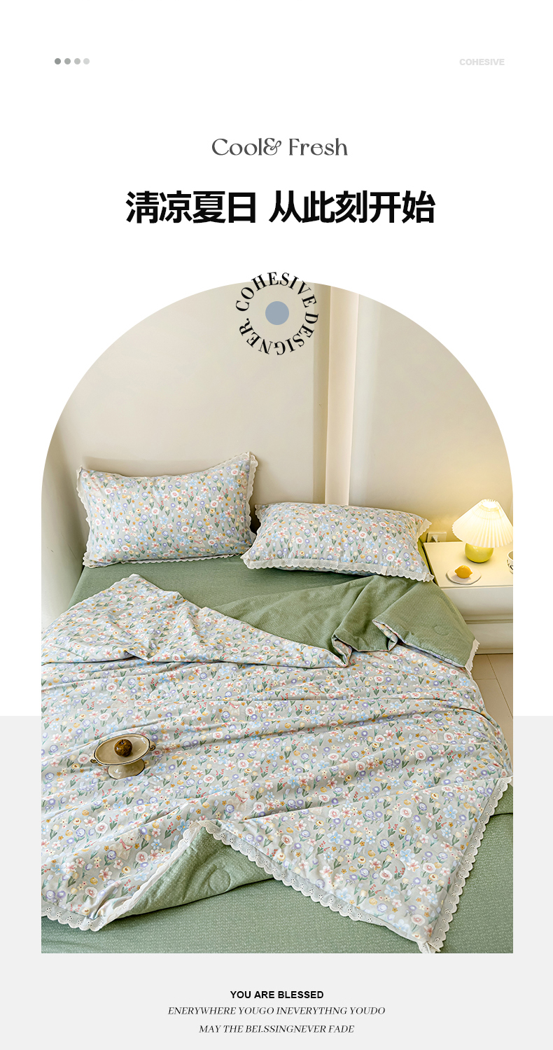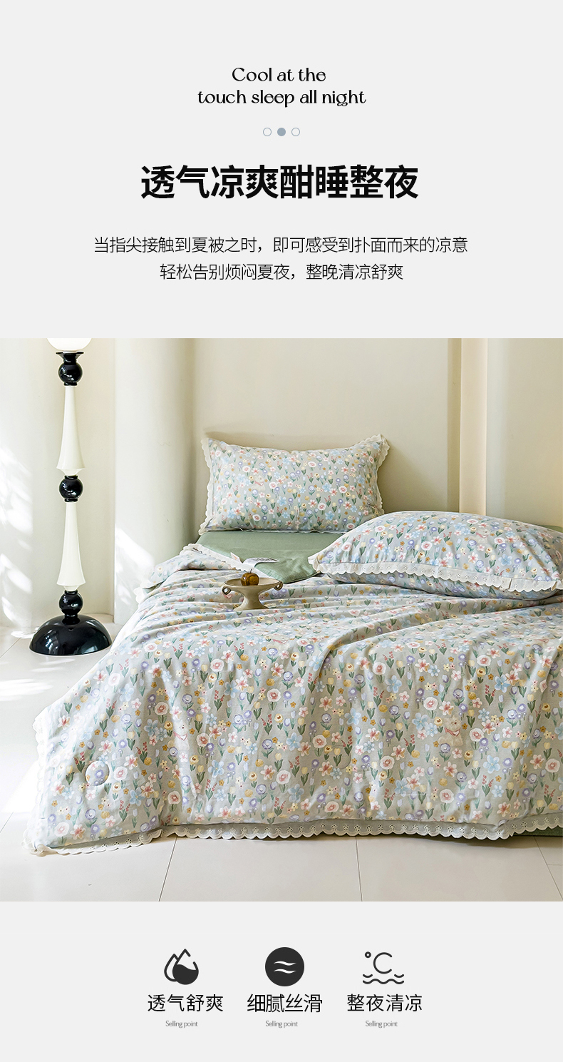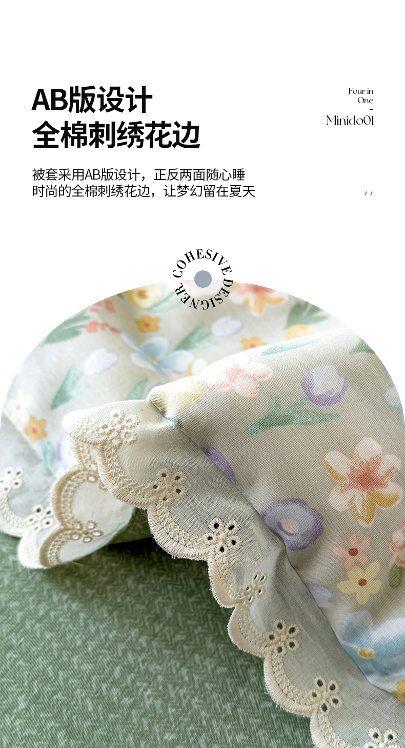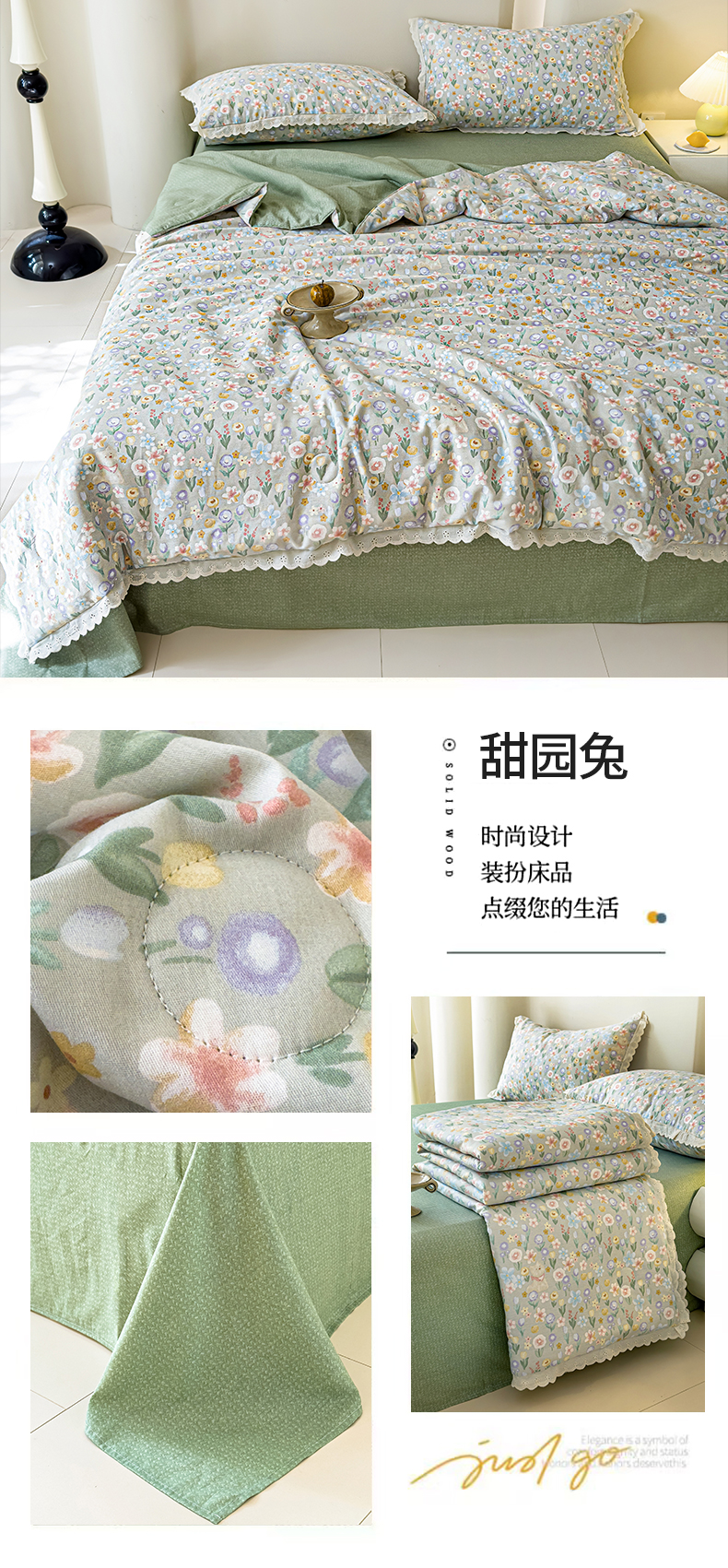 商品名称:被窝家纺 2025新款全棉花边大豆夏被四件套 甜园兔