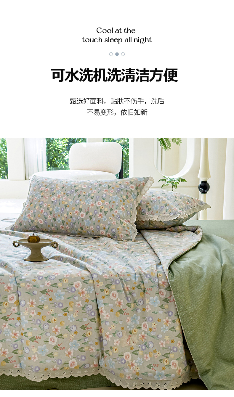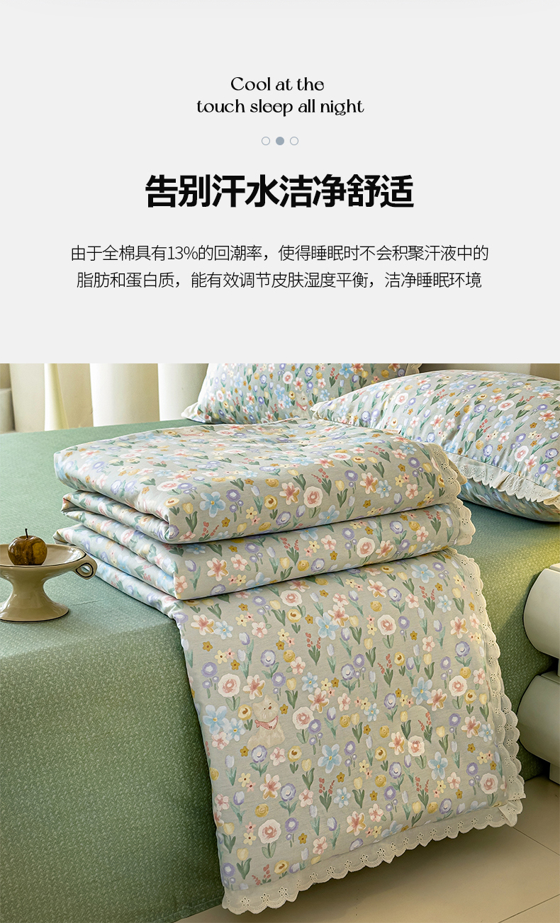 被窝家纺 2025新款全棉花边大豆夏被四件套 甜园兔