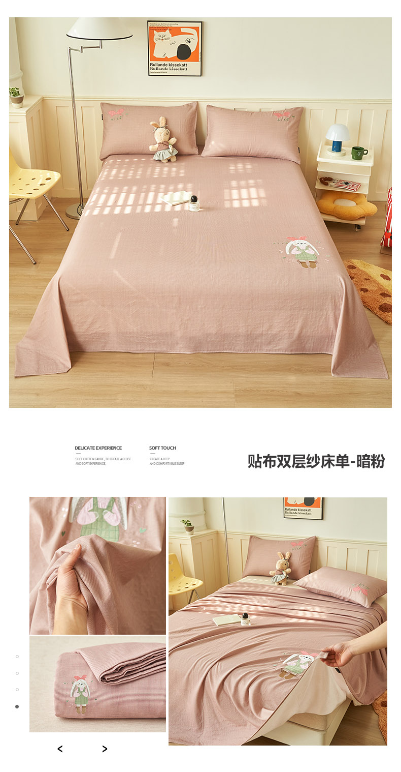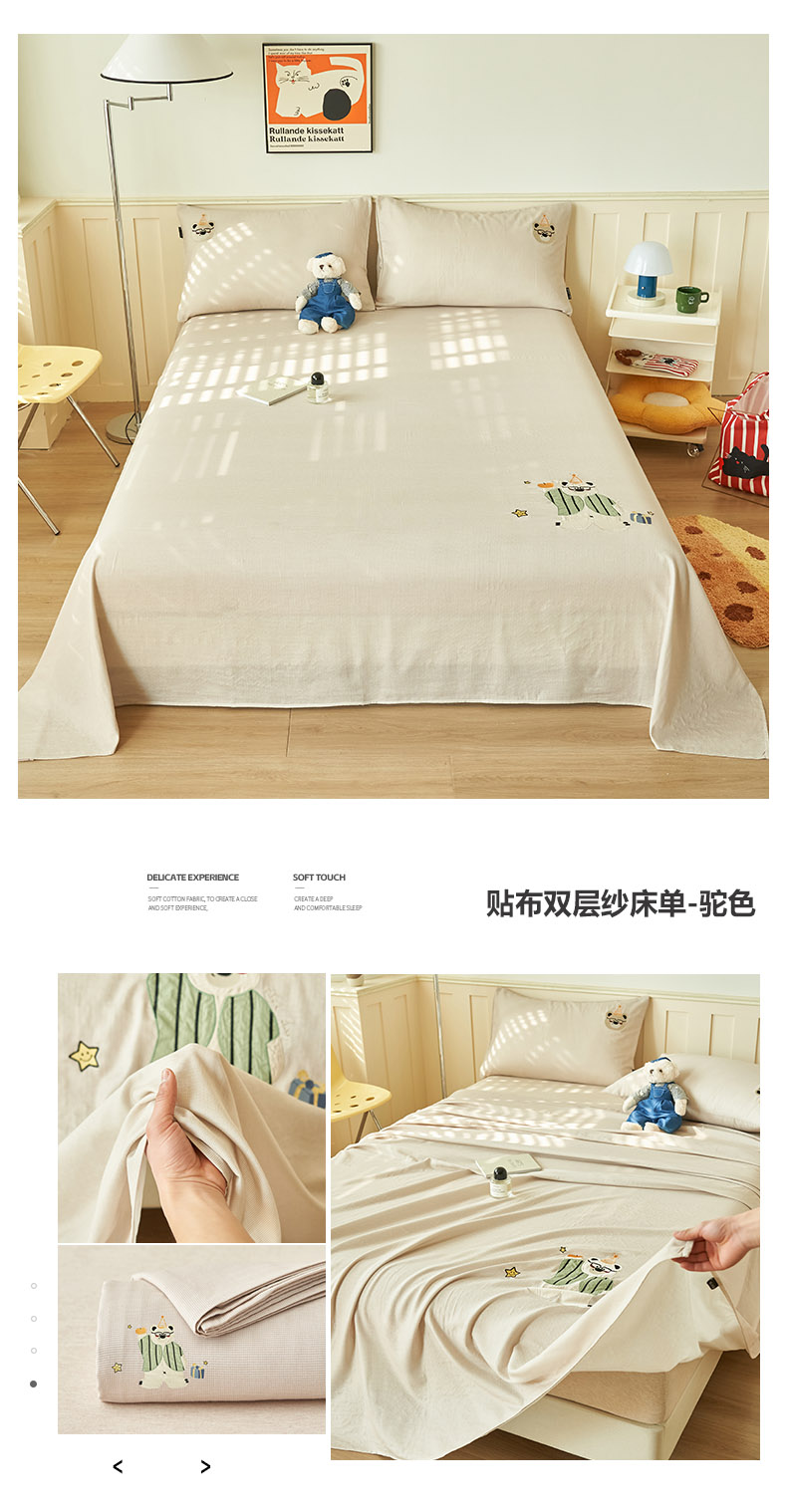 当前位置: 91家纺网 > 商品网购 > 床上用品 > 床单 > 寐绸家纺 2025新款纯棉双层纱贴布绣单床单 贴布双层纱床单-驼色