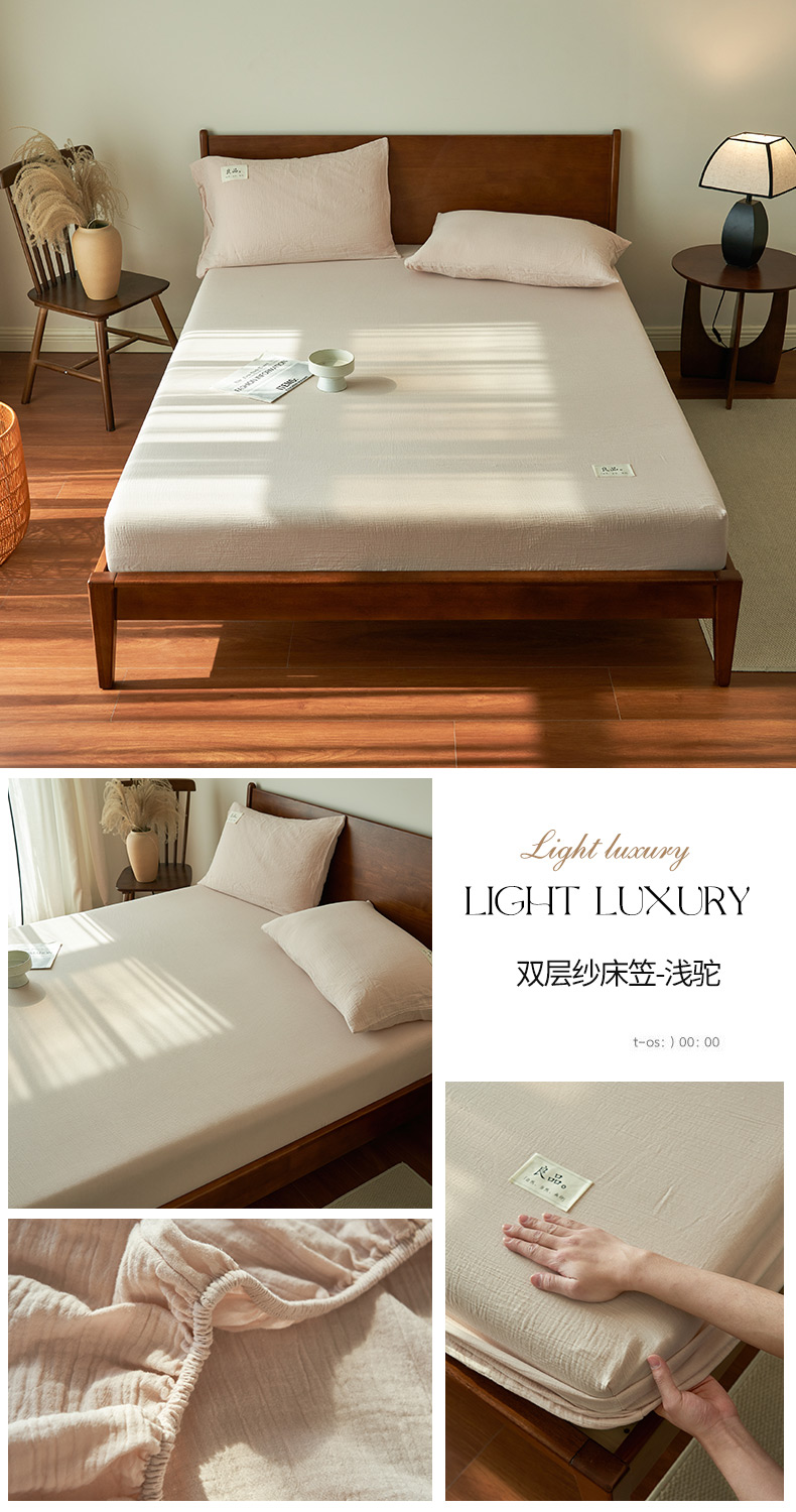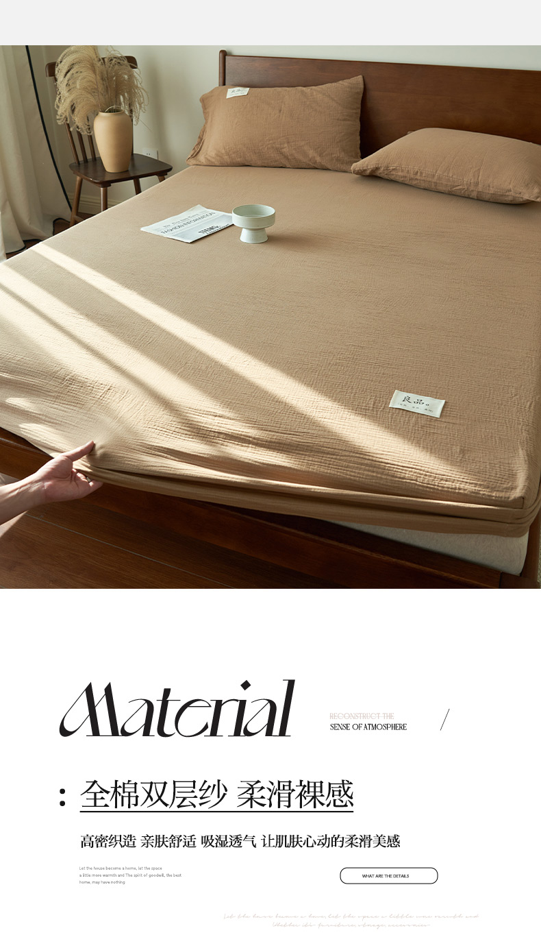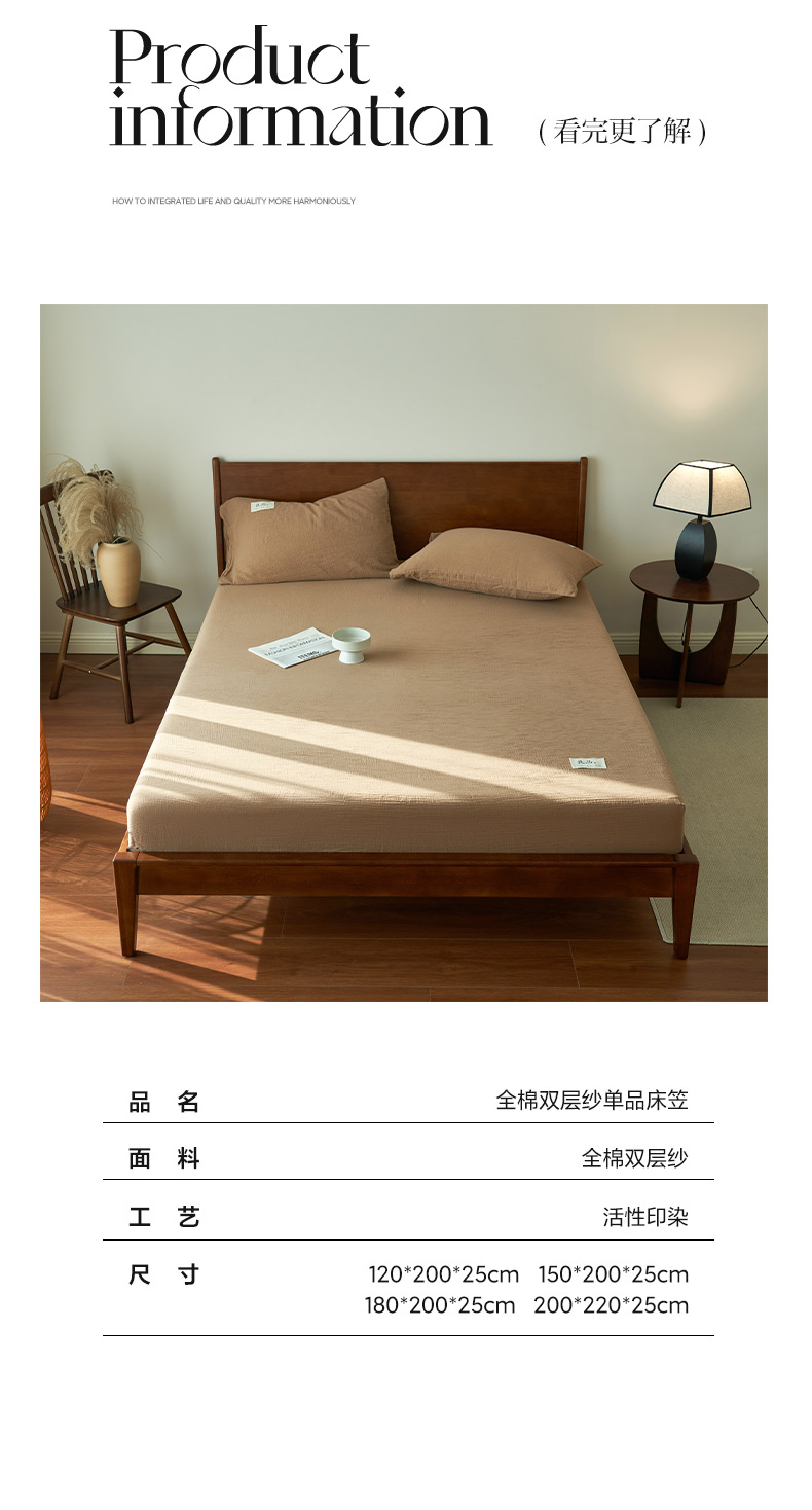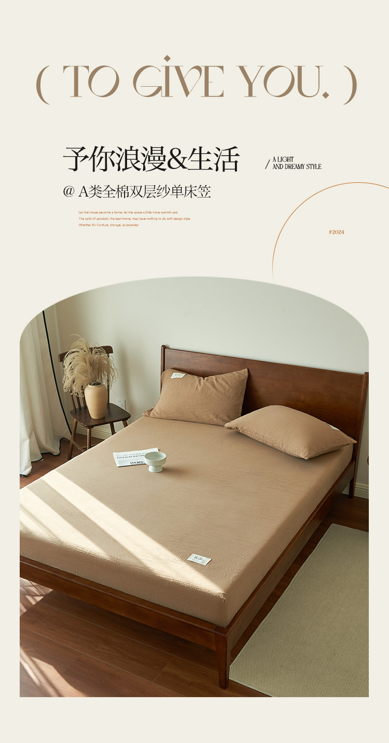 • 91家纺网 家纺一手货源 找家纺 寐绸家纺 2025新款纯棉双层纱单床笠 双层纱床笠-褐色
