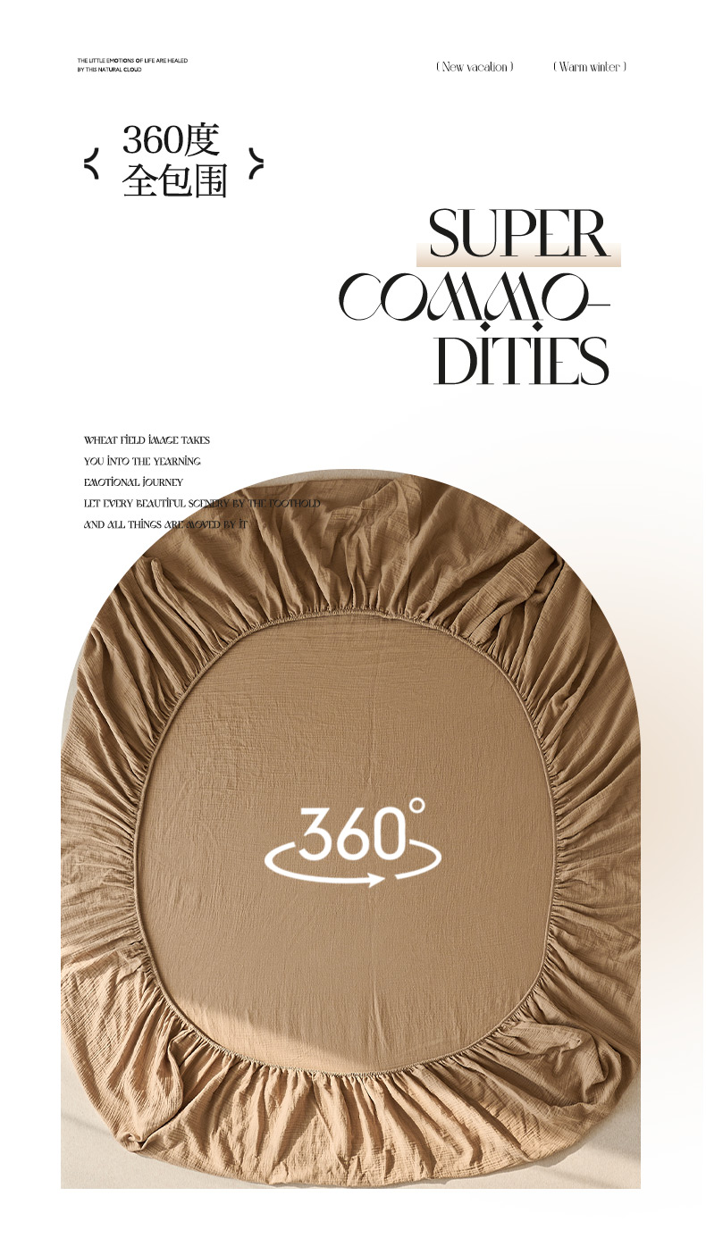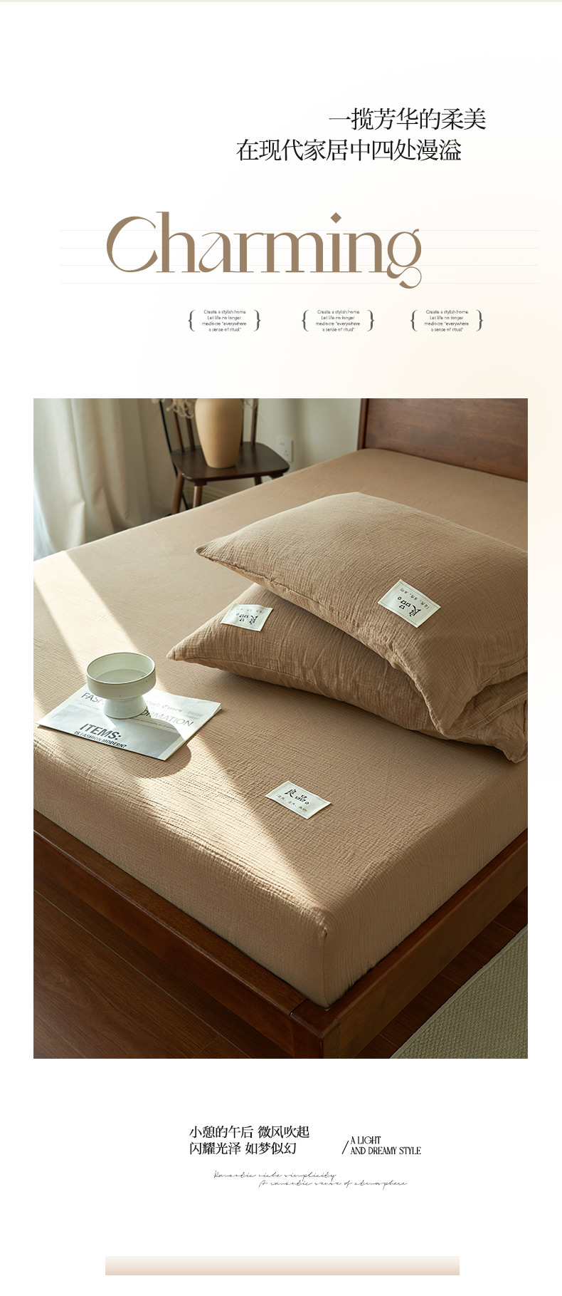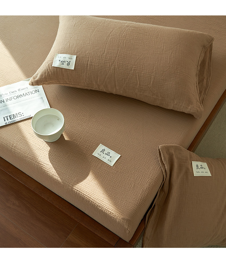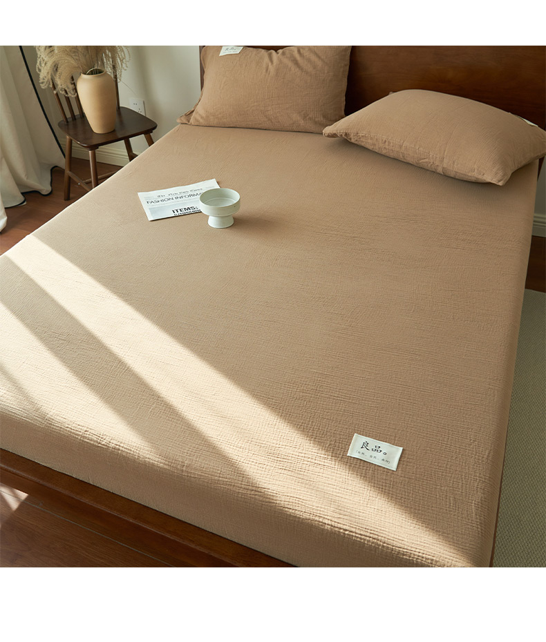 • 91家纺网 家纺一手货源 找家纺 寐绸家纺 2025新款纯棉双层纱单床笠 双层纱床笠-褐色
