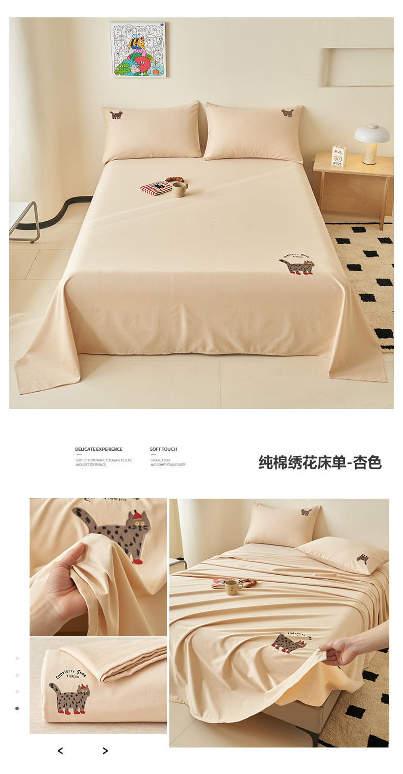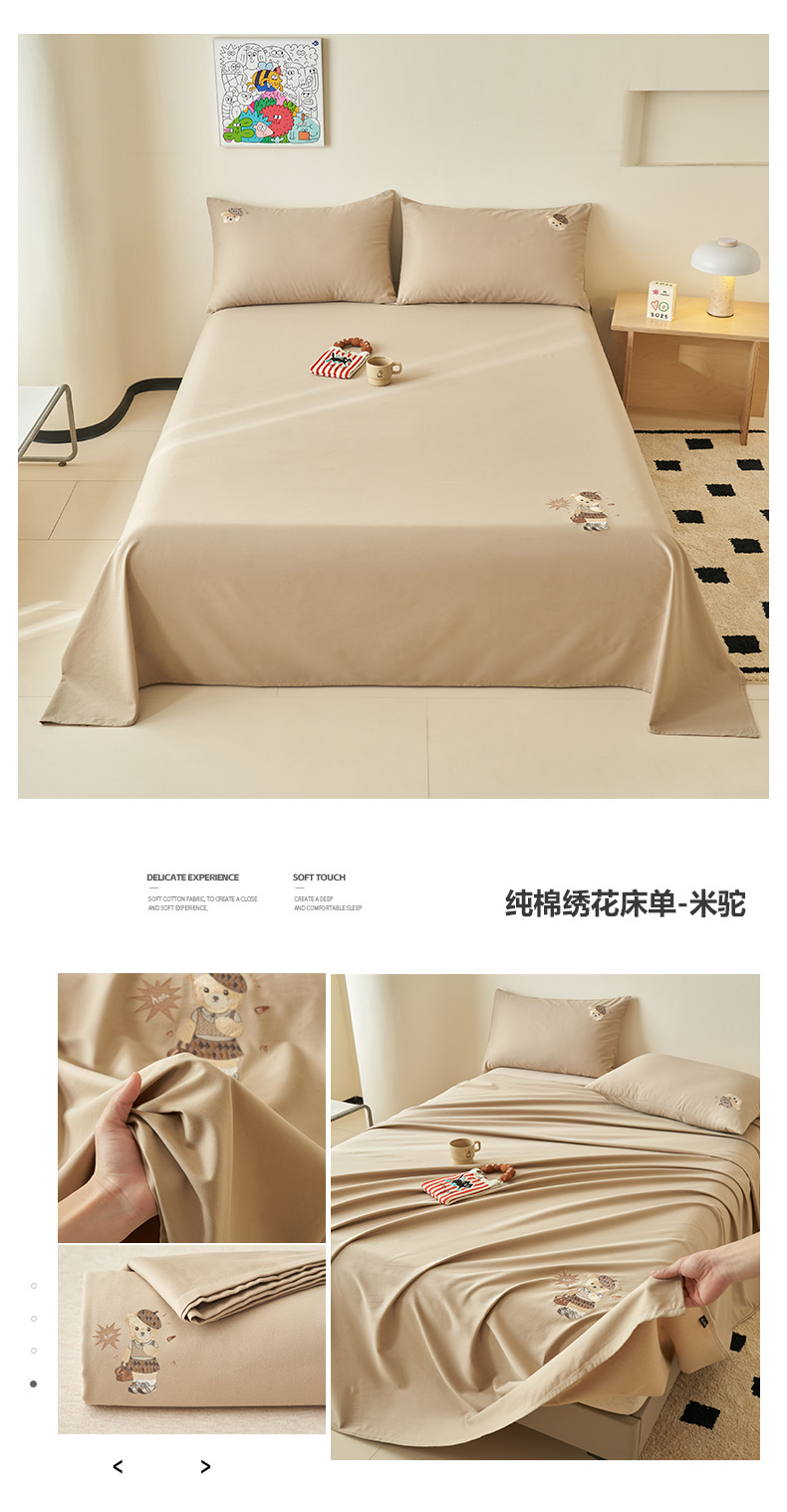 当前位置: 91家纺网 > 商品网购 > 床上用品 > 床单 > 寐绸家纺 2025新款纯棉水洗棉纯色绣花单床单 纯棉绣花床单-米黄