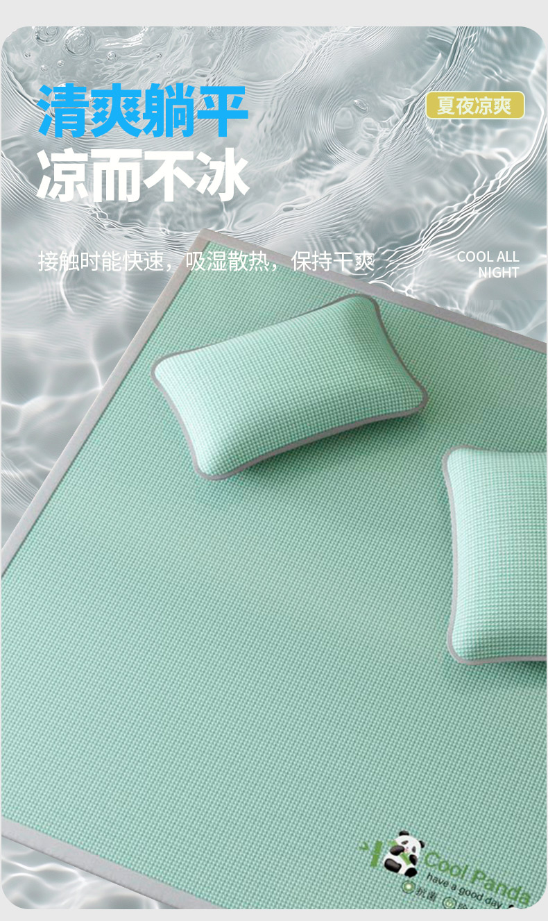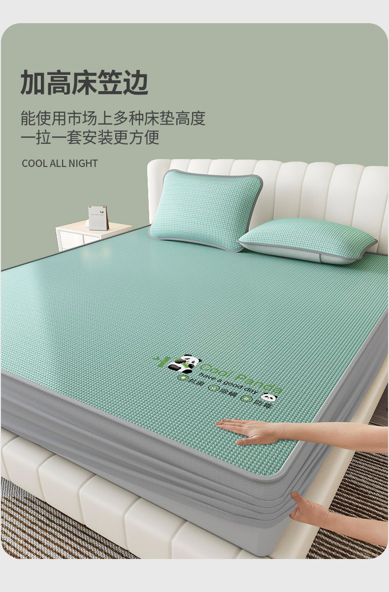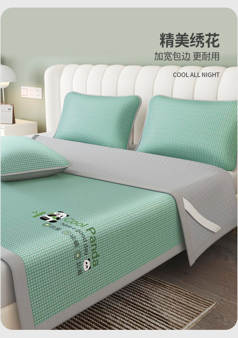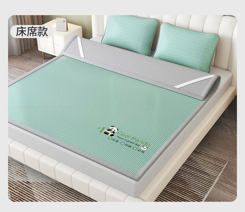 福来临家纺 2025新款清凉抗菌冰丝床席床笠-熊猫 熊猫-绿-床席款