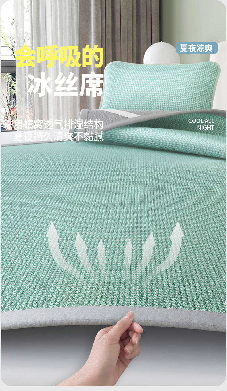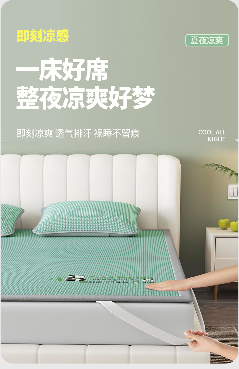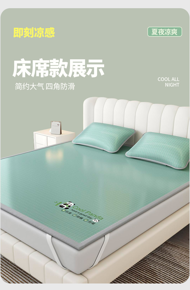 福来临家纺 2025新款清凉抗菌冰丝床席床笠-熊猫 熊猫-绿-床席款