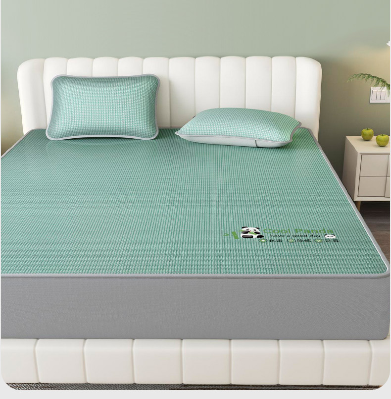 商品名称:福来临家纺 2025新款清凉抗菌冰丝床席床笠-熊猫 熊猫-绿-床席款
