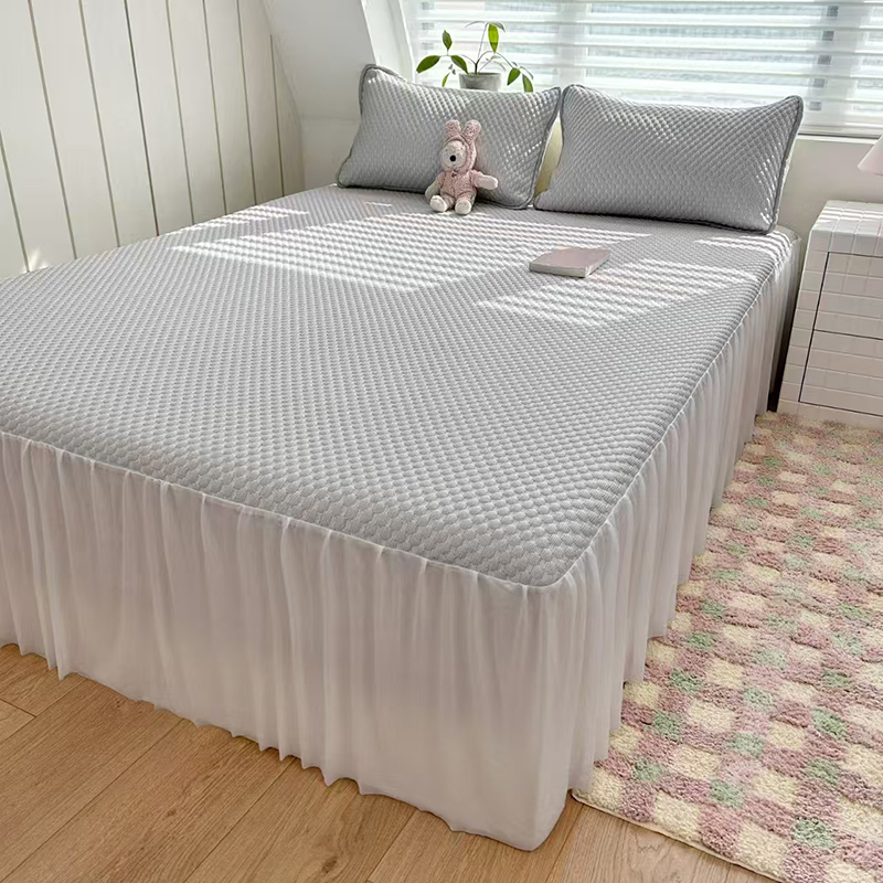 商品名称:柏薇 2025新款3D豆豆凉席冰丝席按摩席夏凉席床单床裙款三件套热销款 月光灰床裙款