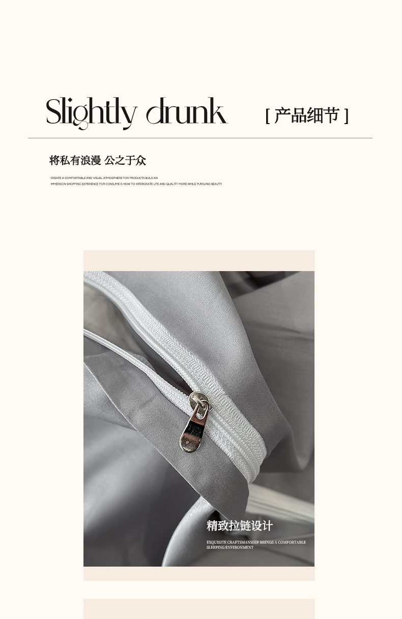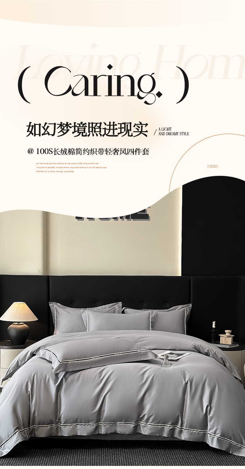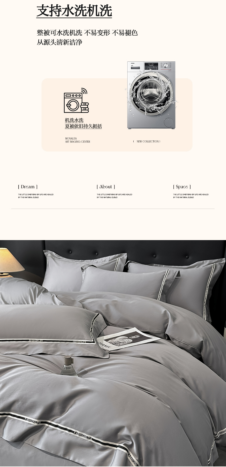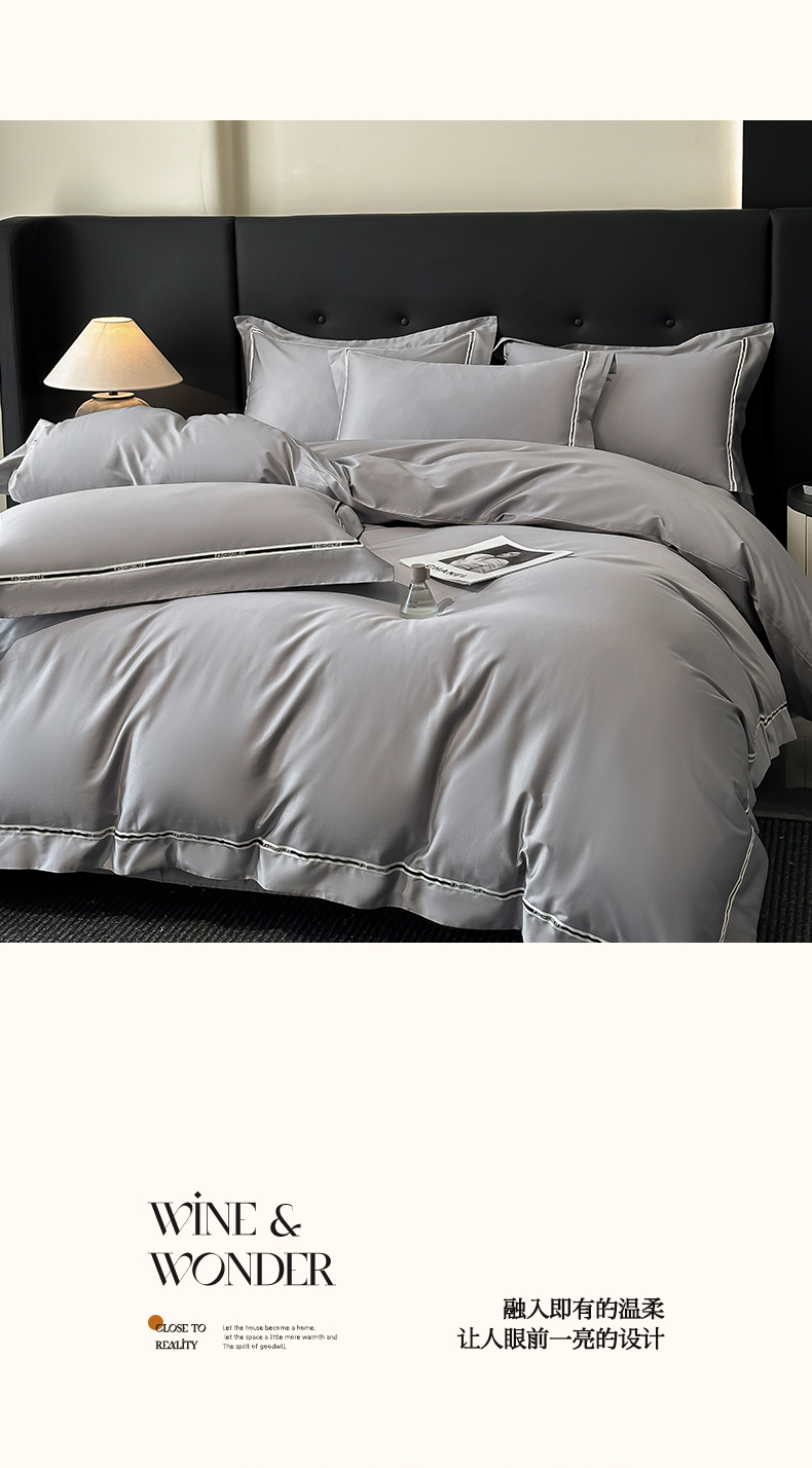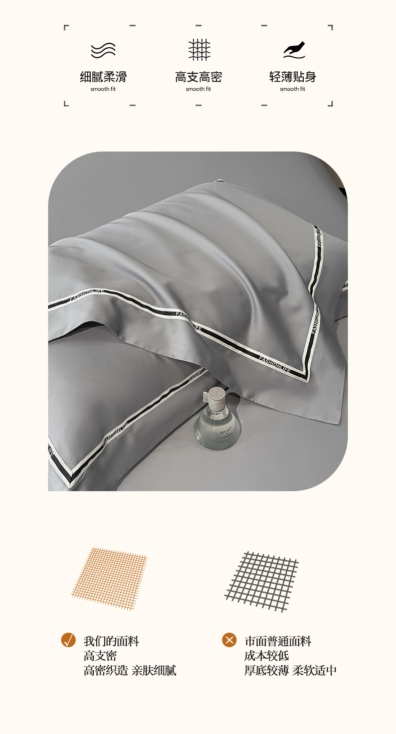 魅都 2025新款100支长绒棉简约织带轻奢风四件套-罗伊 浅灰