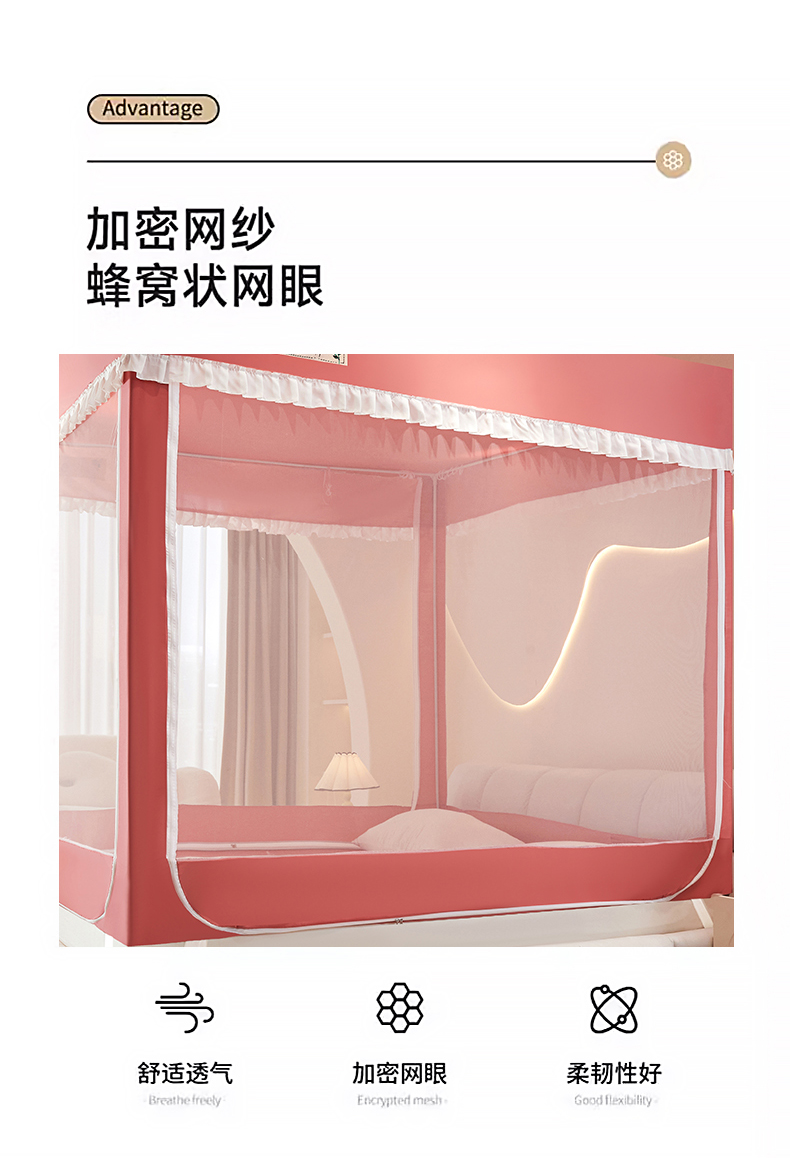 商品名称:锦逸家居 2025新款坐床式防摔遮光蚊帐 微笑人生-不遮光