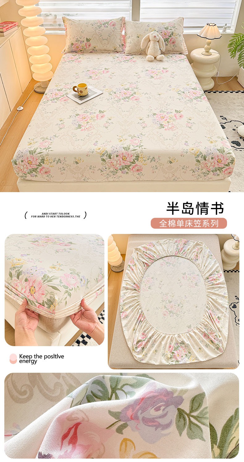 2025新款12868全棉套件单品系列二单床笠 叶伴花开