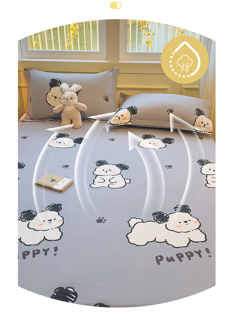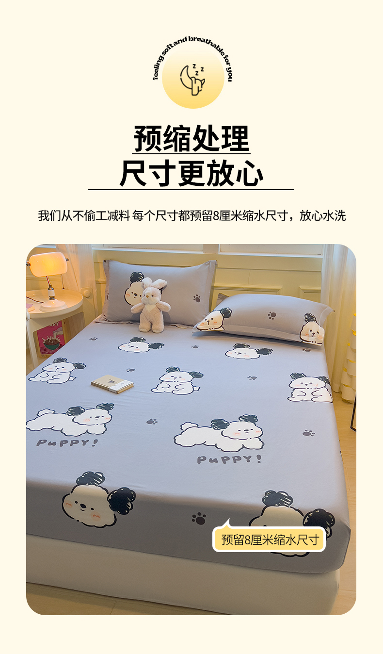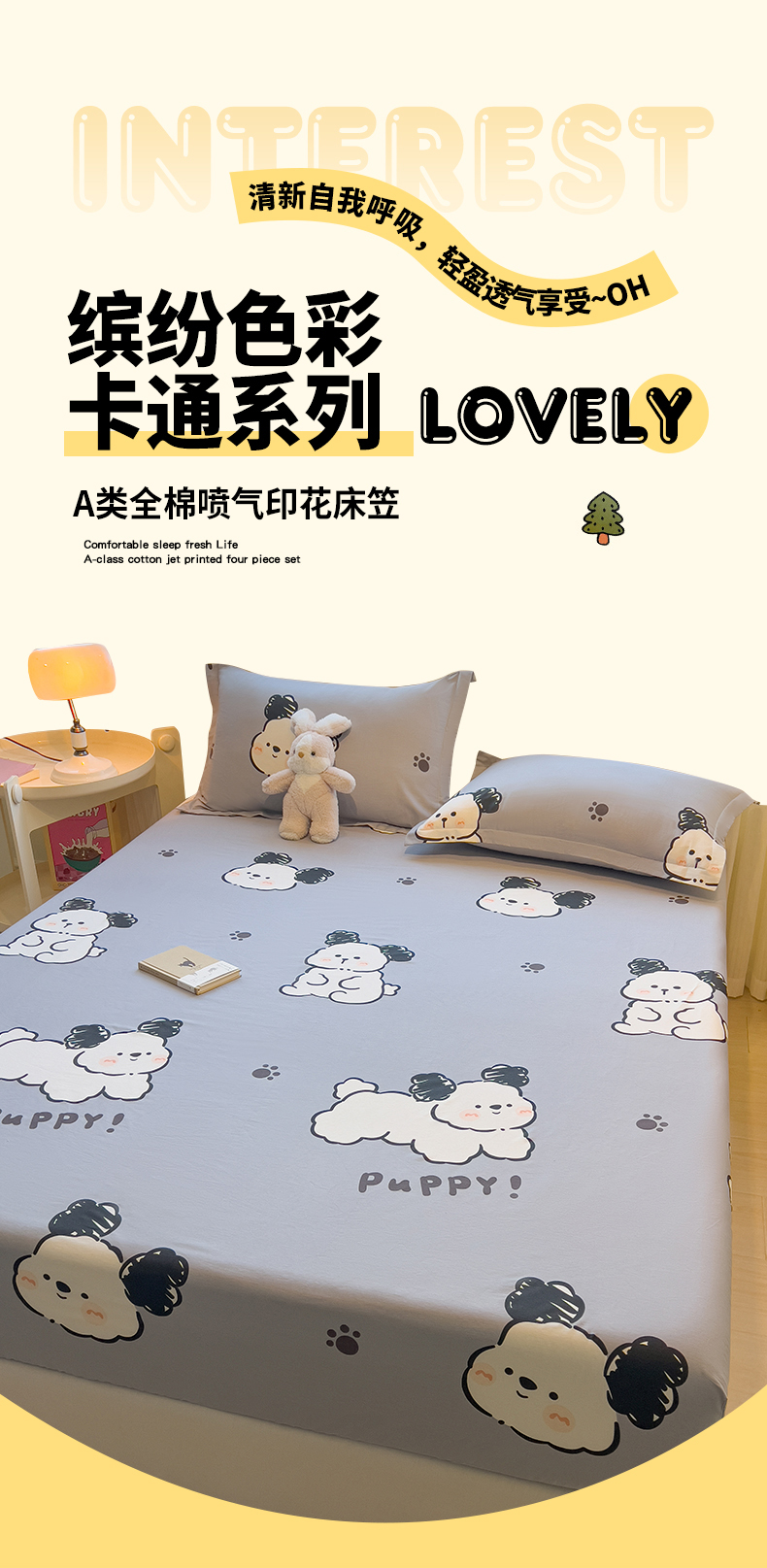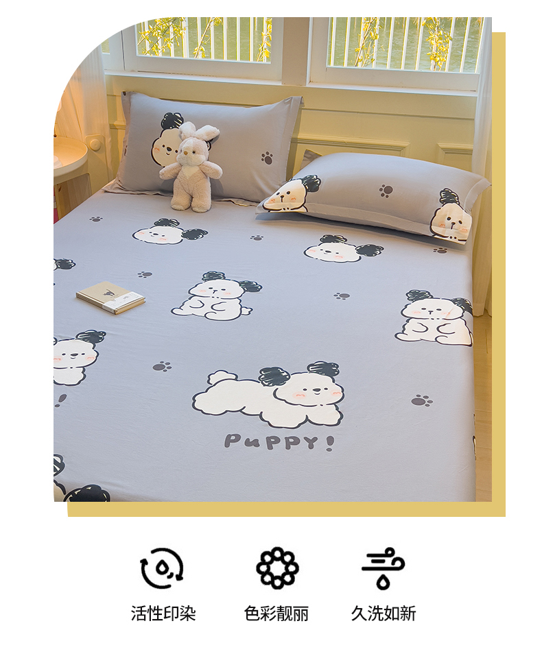 拾物记 2025新款A类无荧光全喷气全棉12868单床笠 小狗奔奔