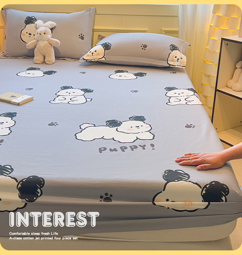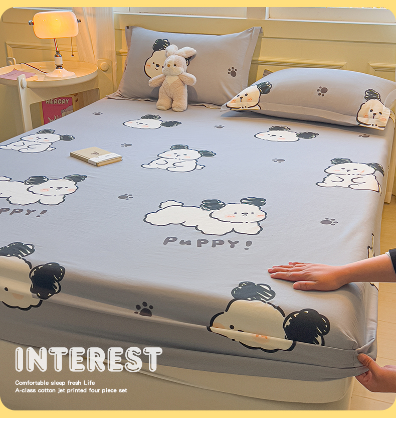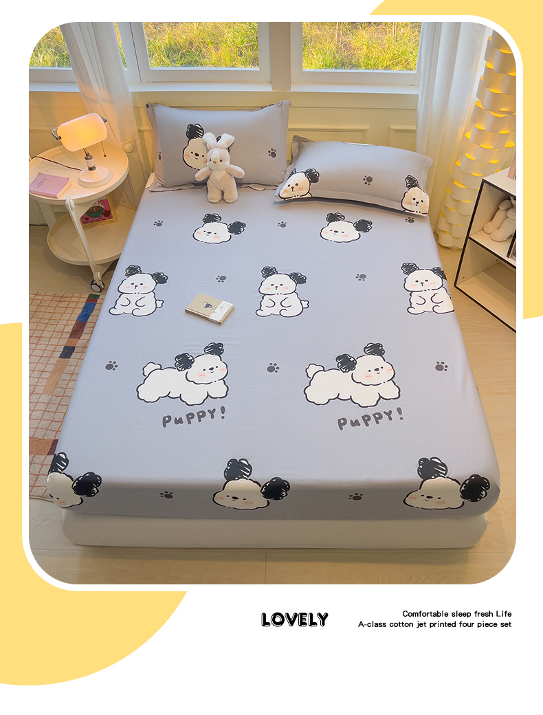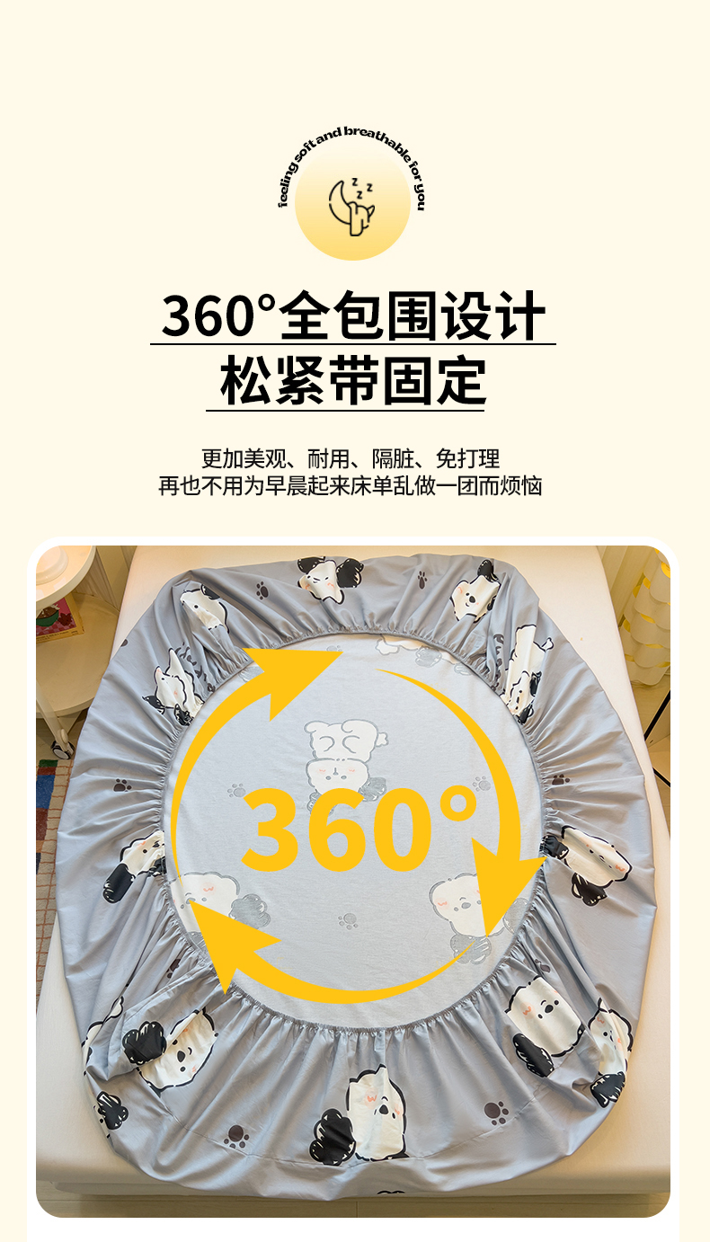 拾物记 2025新款A类无荧光全喷气全棉12868单床笠 小狗奔奔