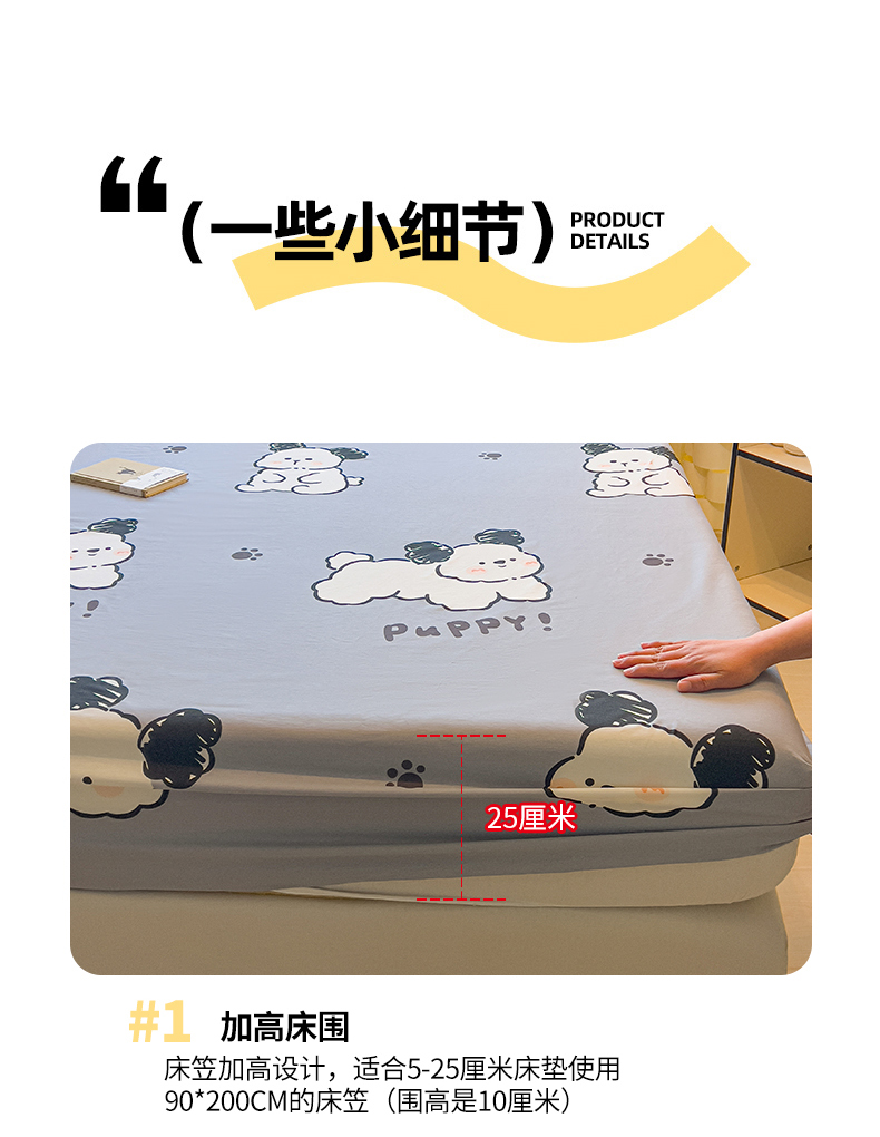 • 91家纺网 家纺一手货源 找家纺 拾物记 2025新款A类无荧光全喷气全棉12868单床笠 小狗奔奔