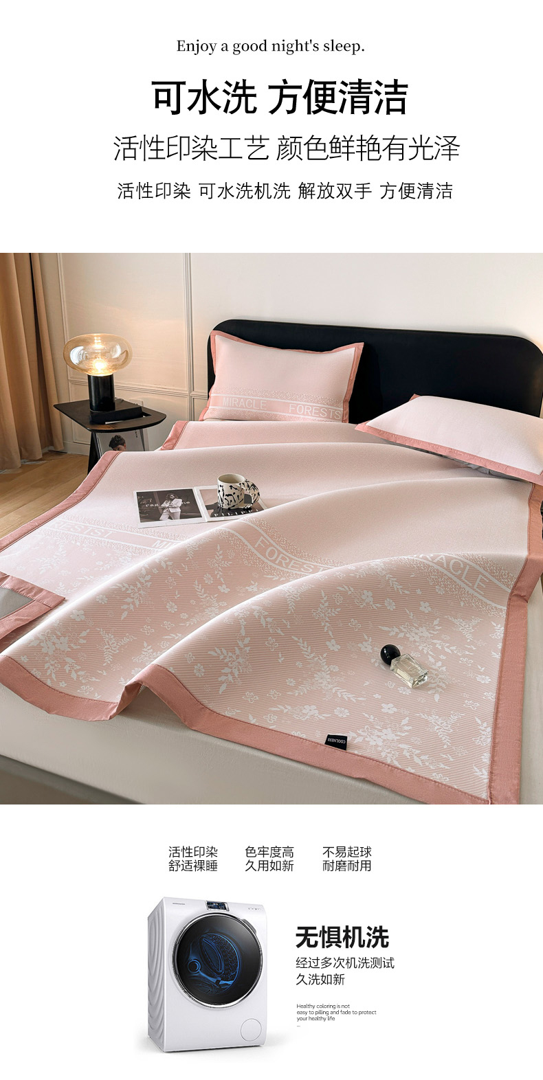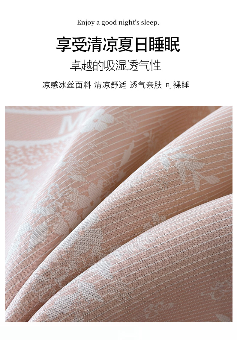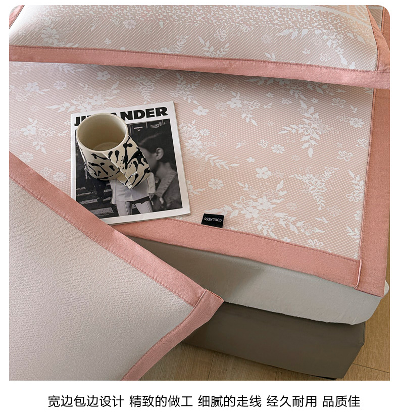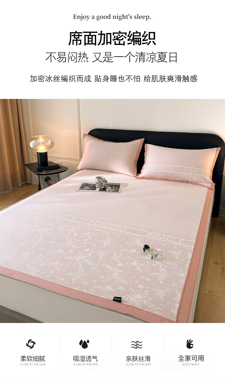 商品名称:慕尚家纺 2025春夏新款凉感冰丝提花凉席三件套 海棠 粉