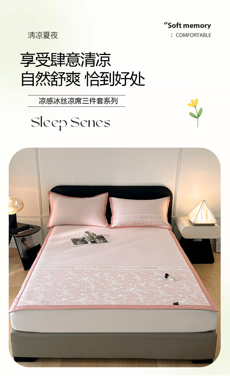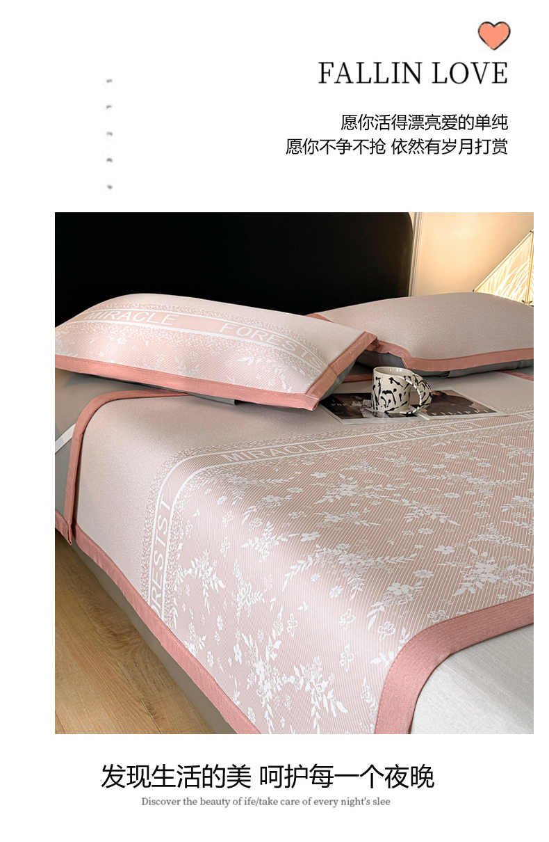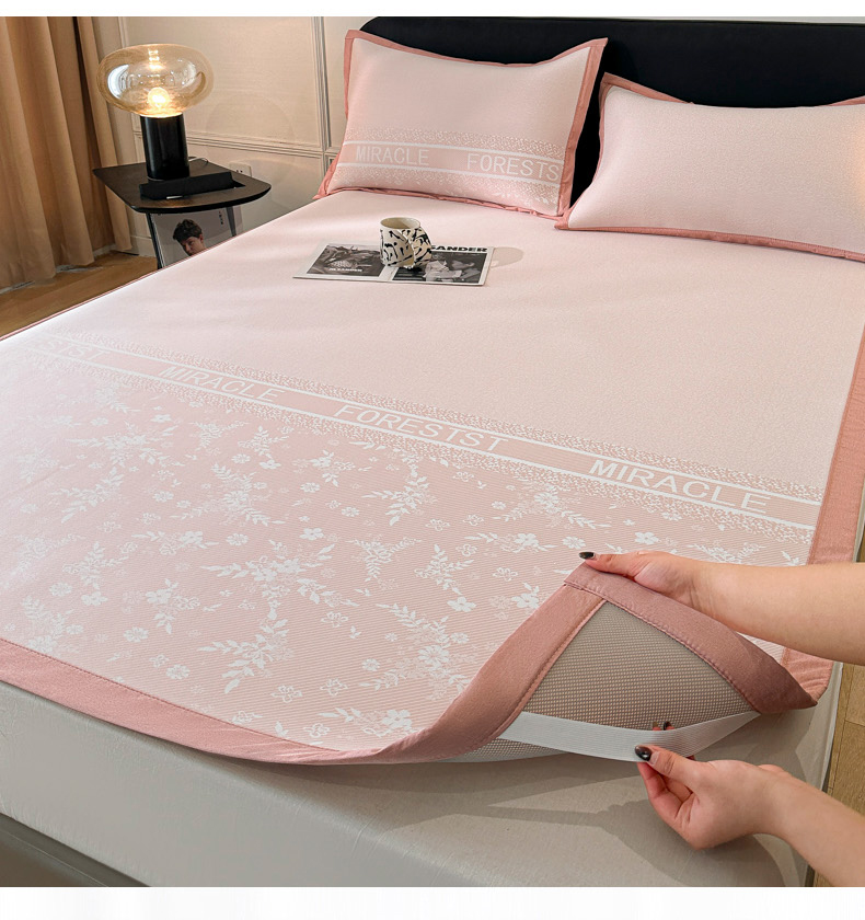 慕尚家纺 2025春夏新款凉感冰丝提花凉席三件套 海棠 粉
