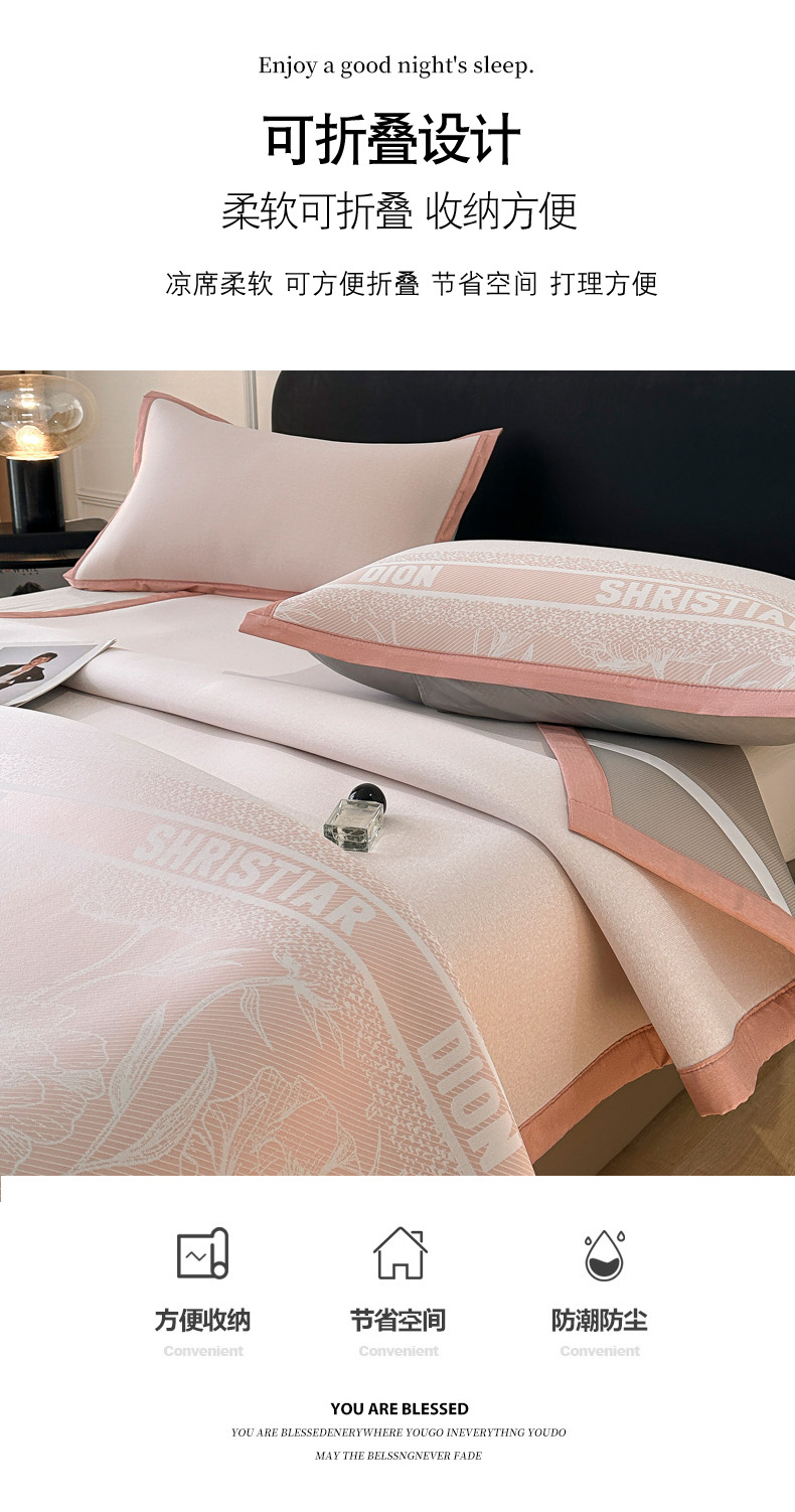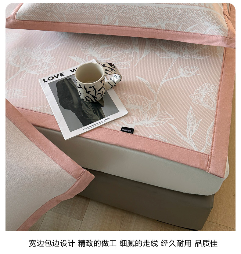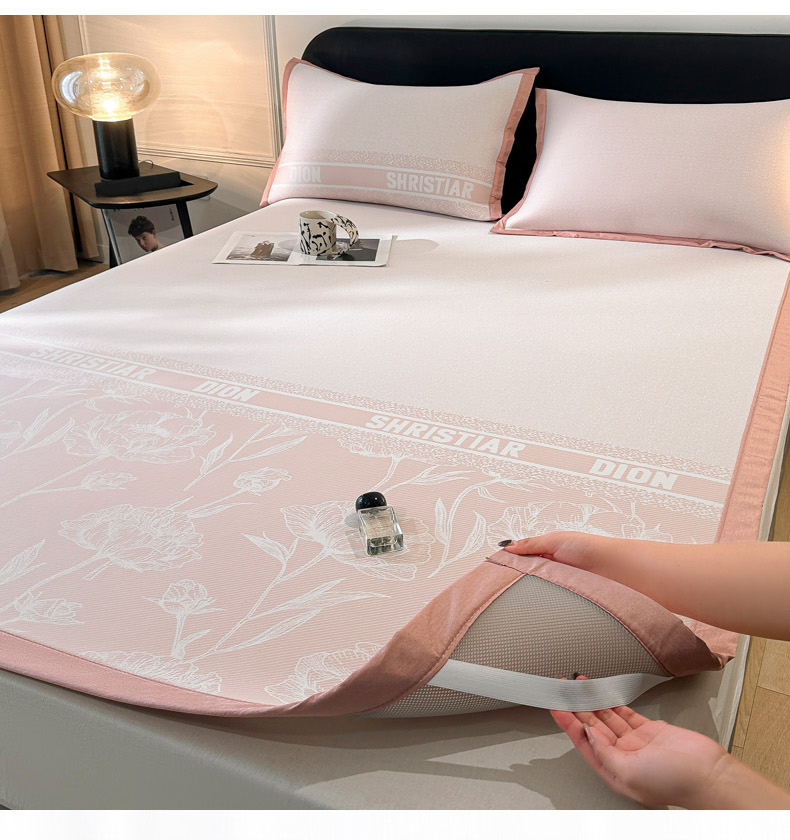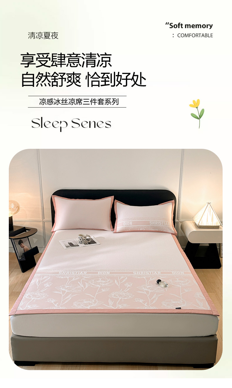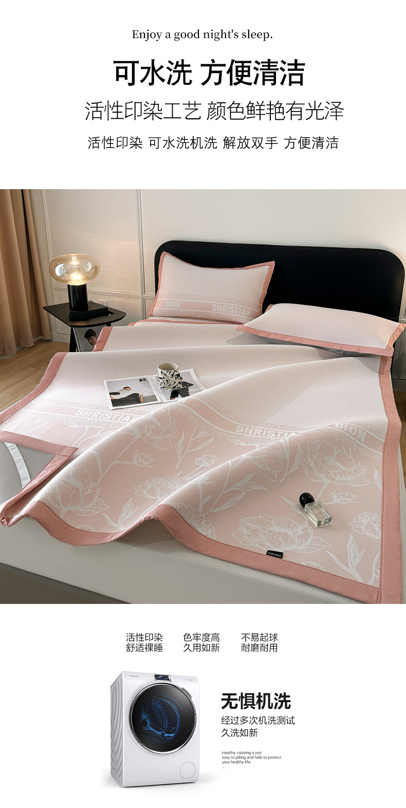 慕尚家纺 2025春夏新款凉感冰丝提花凉席三件套 水仙 粉