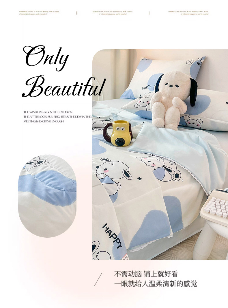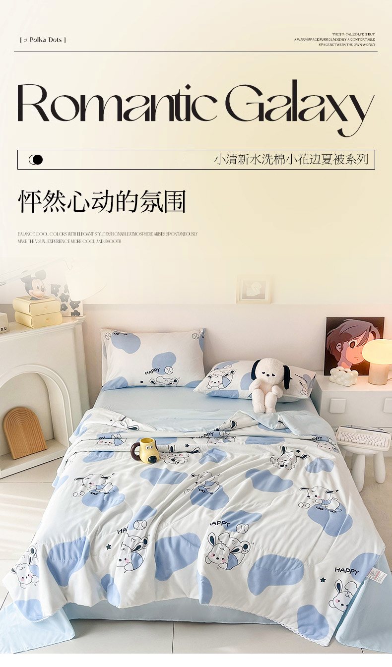 倾慕家纺 2025新款水洗棉小花边夏被 滑板狗