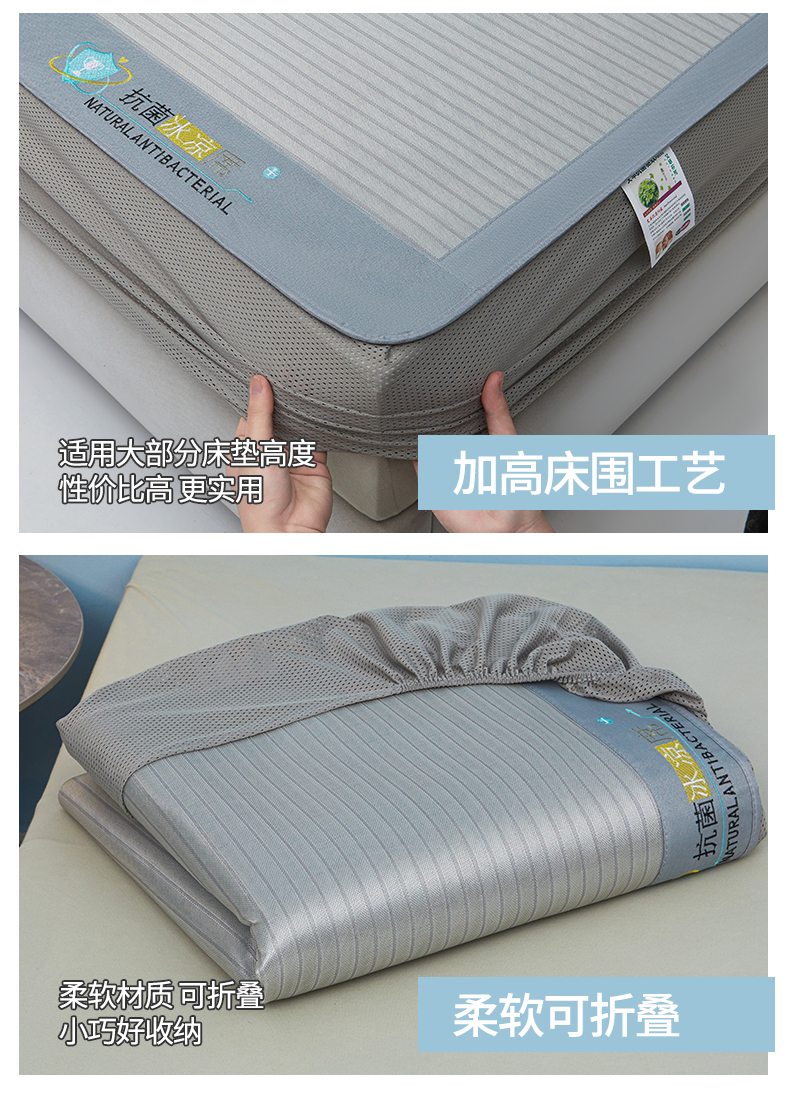 • 91家纺网 家纺一手货源 找家纺 阿亮家居 2025新款凉席抗菌刺绣可水洗碳光冰丝席包边无纺布冰丝席 素夏 绅士灰-床笠款
