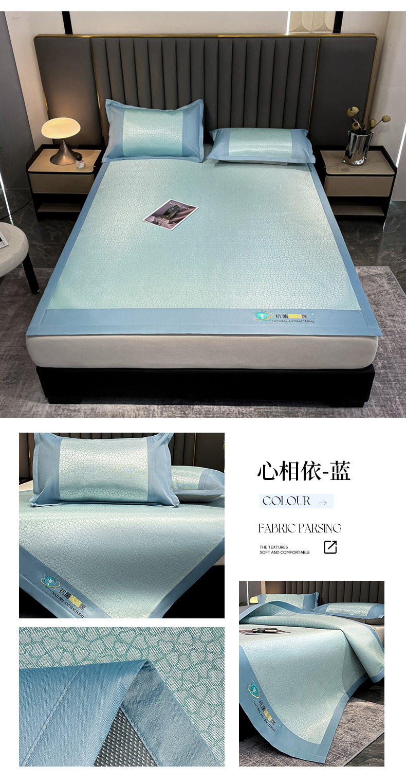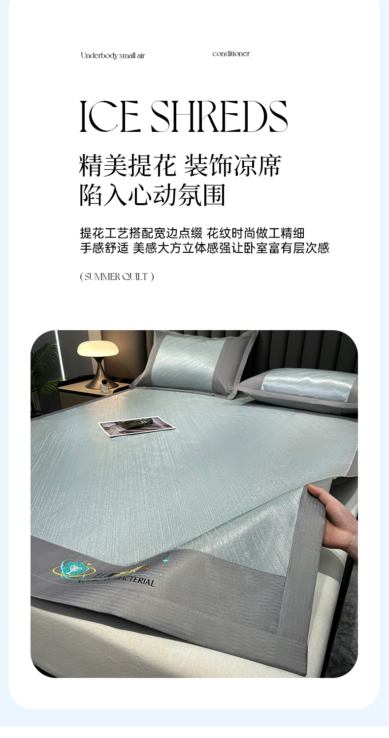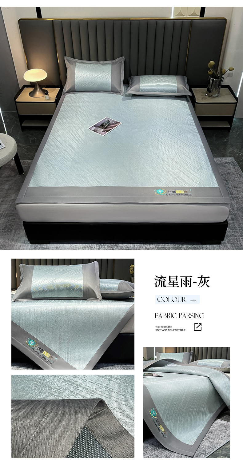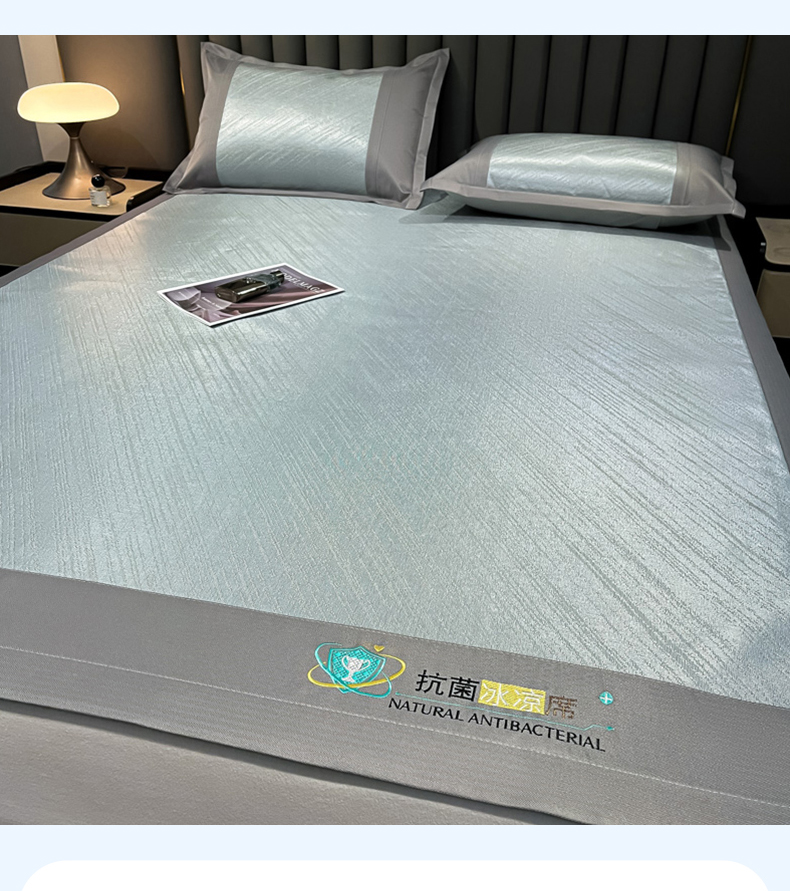 (总)阿亮家居 2025新款A类母婴级1800D碳光小鹿冰丝席凉席,宾利蓝,冰川灰,繁星绿,山茶粉,香槟金