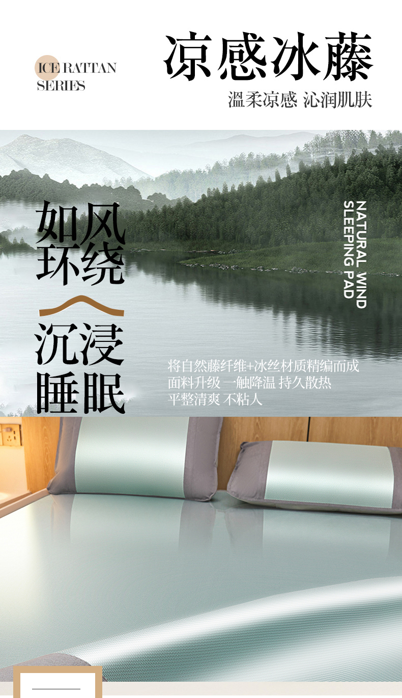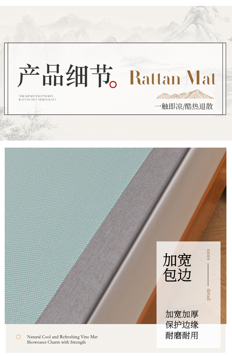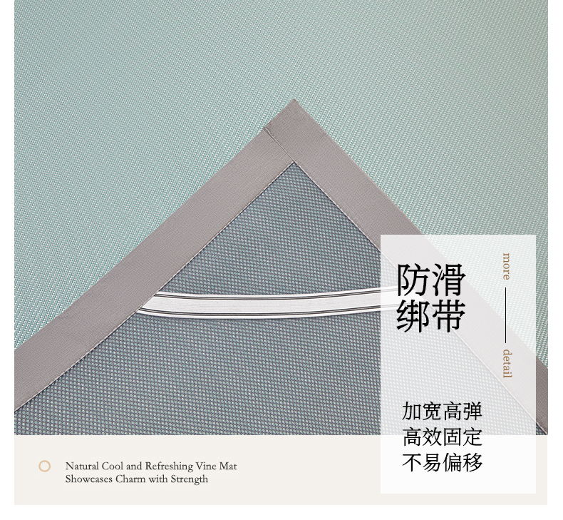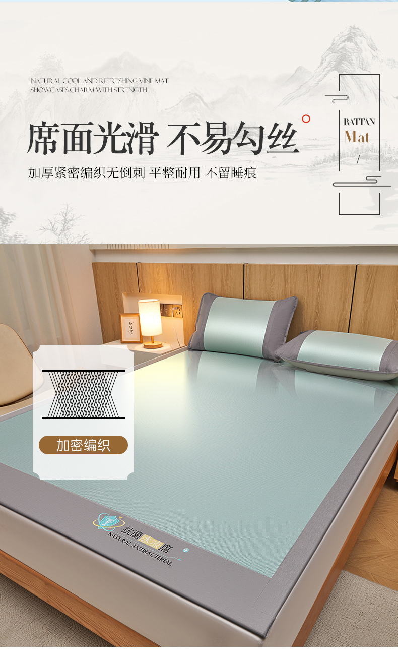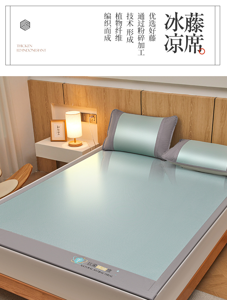商品名称:阿亮家居 2025新款冰藤席凉席三件套包边抗菌刺绣款冰藤凉席 绿色-床笠款