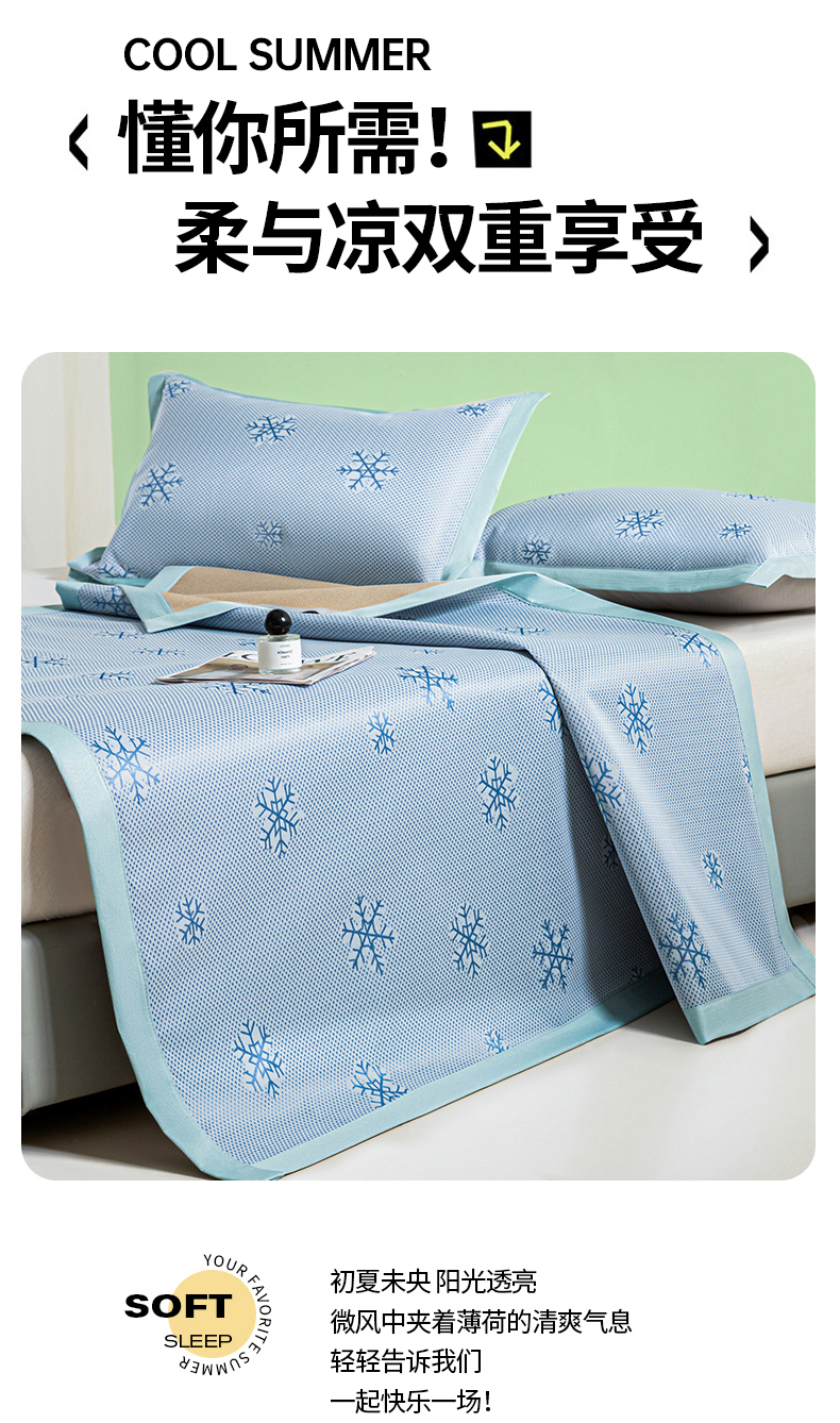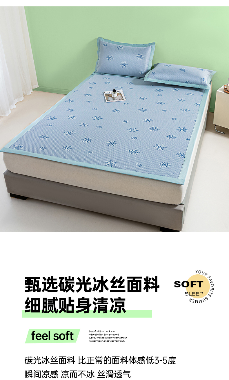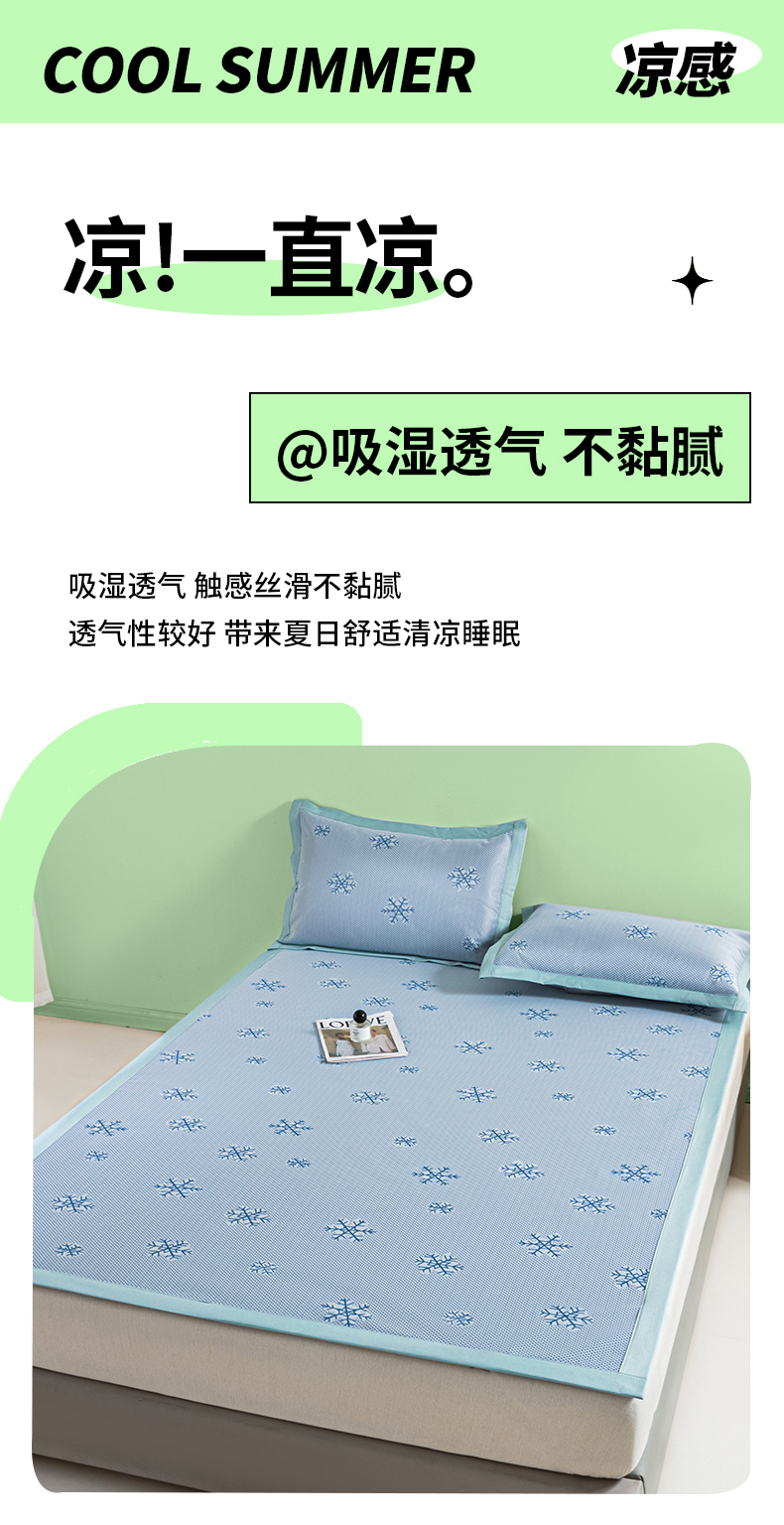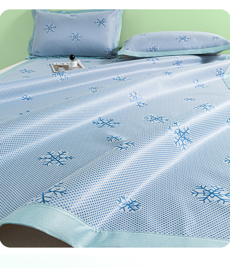 商品名称:阿亮家居 2025新款凉席碳光席冰丝席三件套 雪花-蓝色