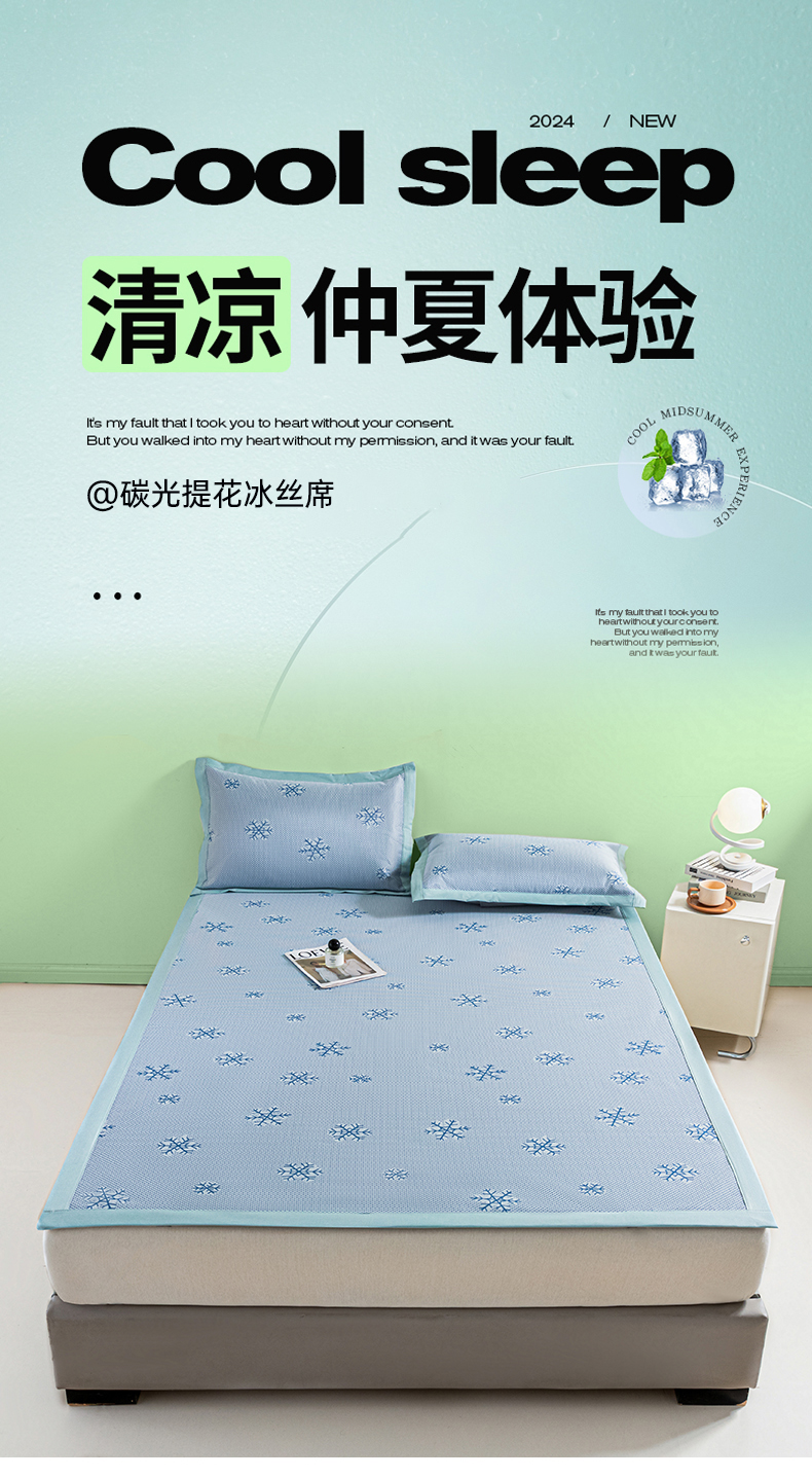 (总)阿亮家居 2025新款A类母婴级1800D碳光小鹿冰丝席凉席,宾利蓝,冰川灰,繁星绿,山茶粉,香槟金