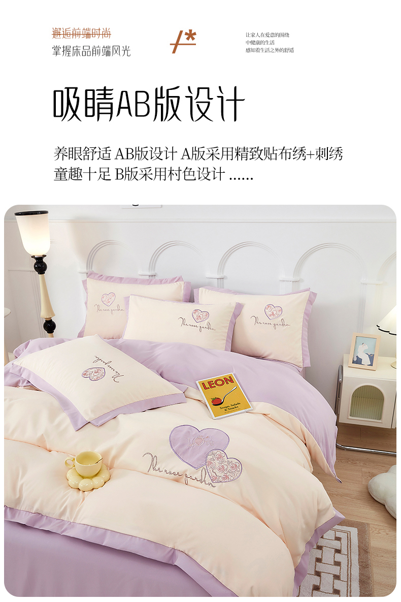 (总)卡迪亚家纺 2025新款加厚柔肤棉贴布绣宽边双拼刺绣四件套-满心花园