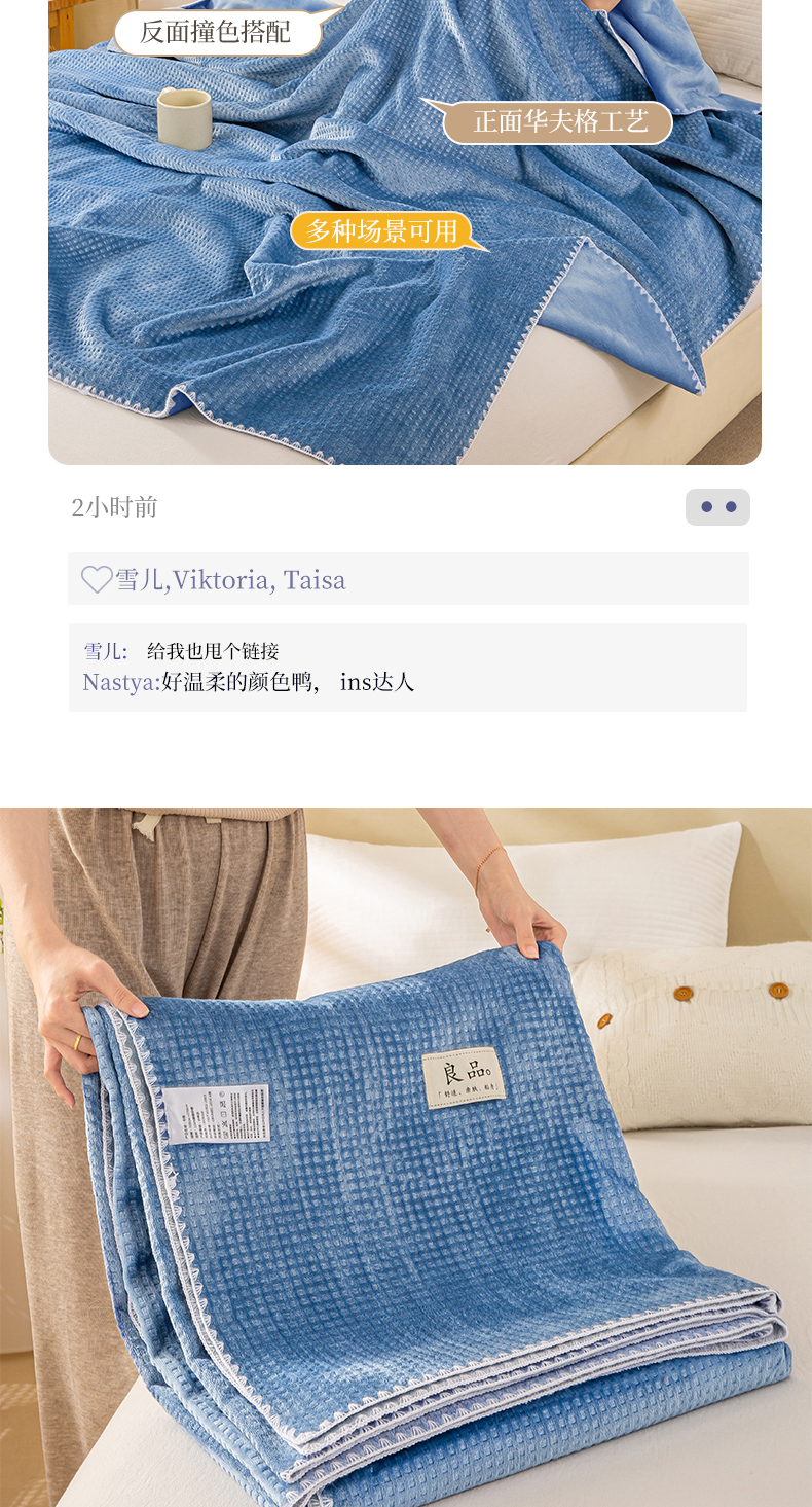 (总)恋人优选 2025新款A类牛奶绒毛毯毯子多功能双面盖毯办公室披肩,百合绿,豆沙粉,果绿,海蓝格,灰中格,橘黄,蓝大格,宾利蓝,蓝灰,蓝小格,米白,浅灰,浅蓝,深灰